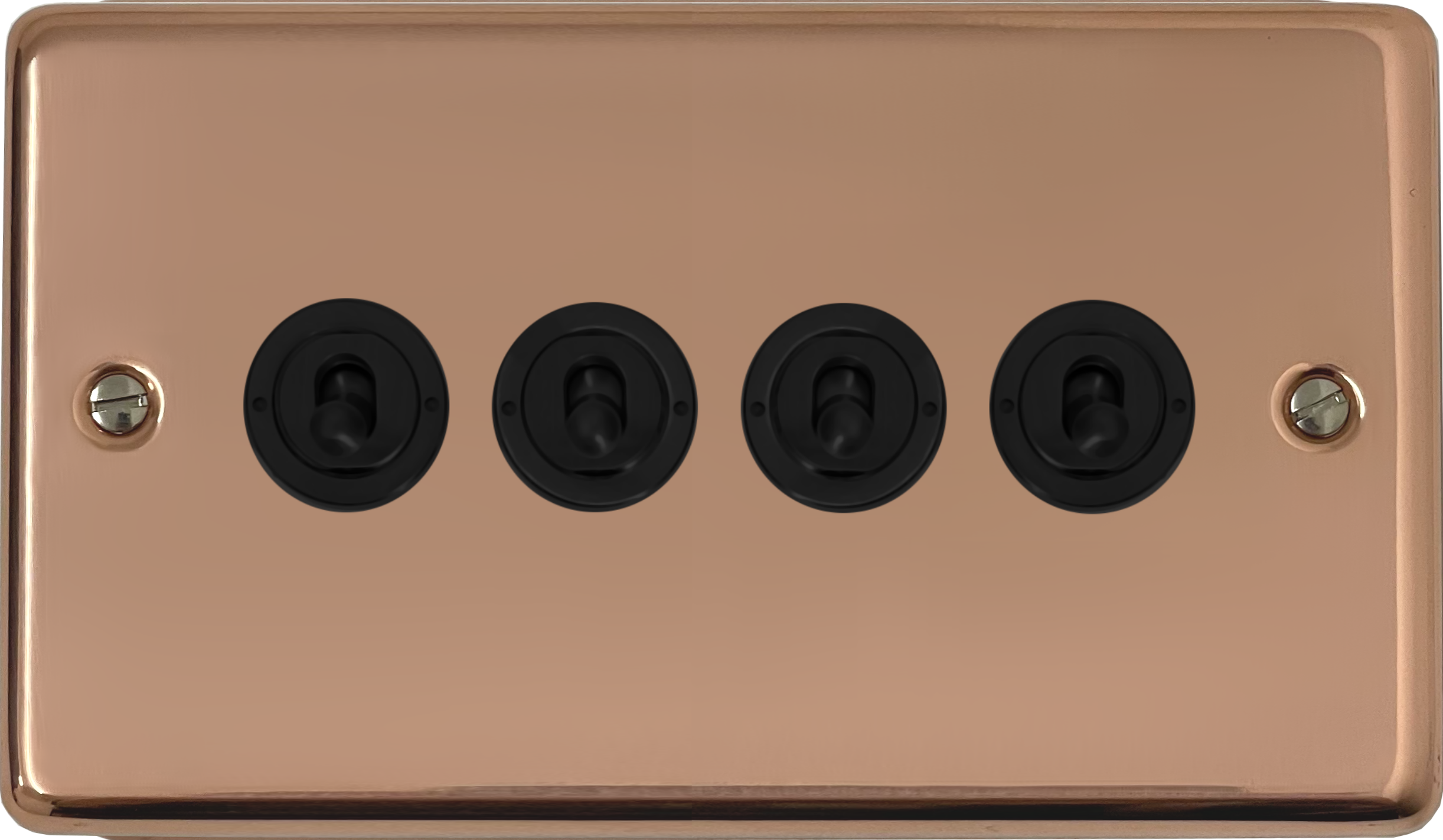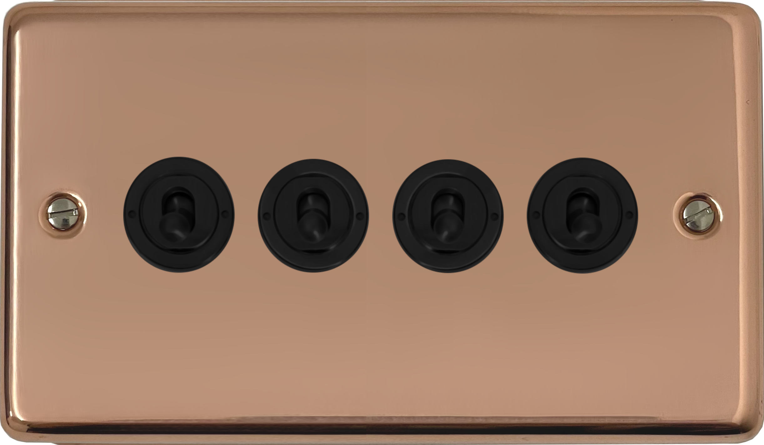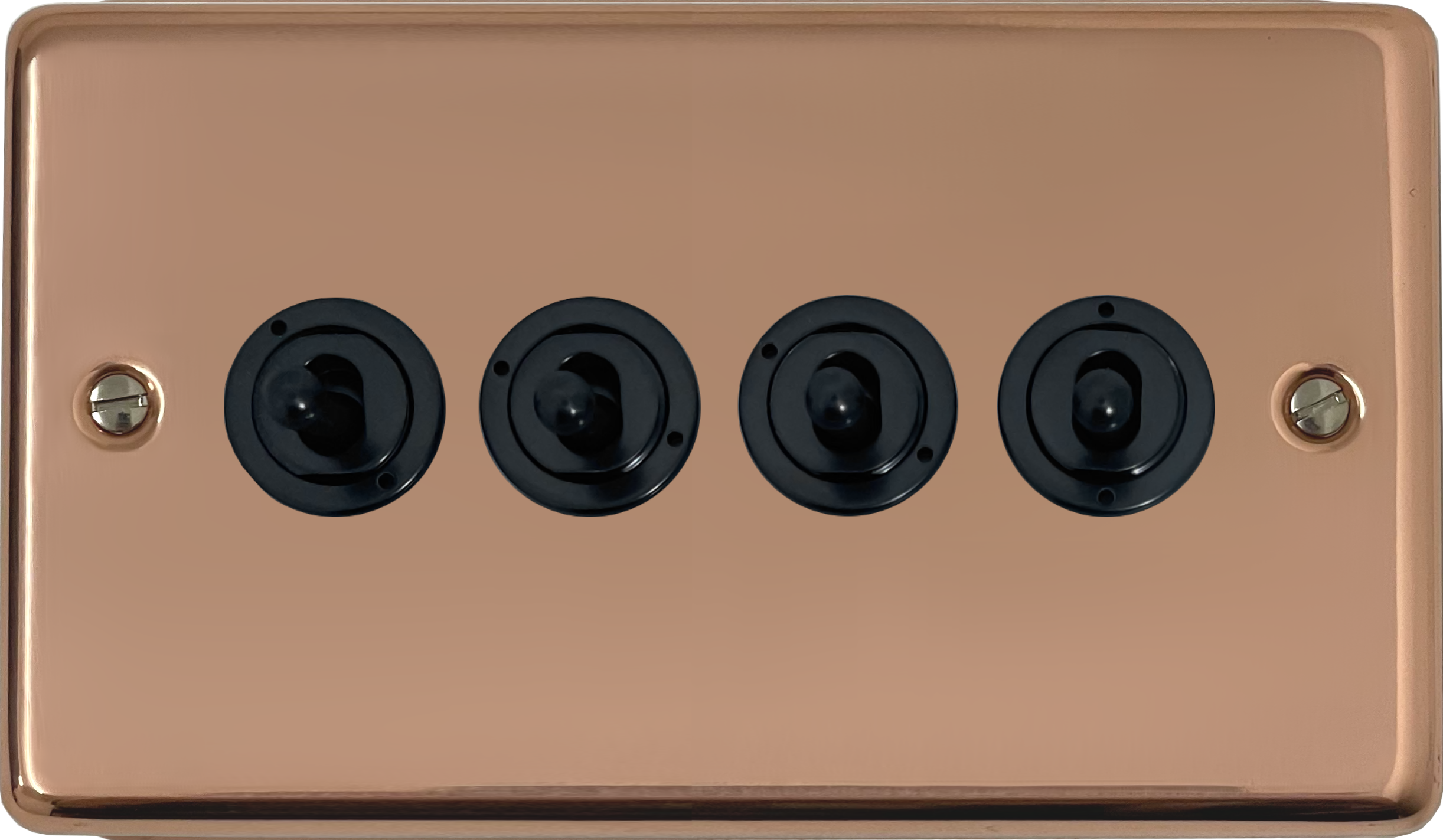 Contour Copper Toggle Switch (4 Gang/Matt Black Toggles) - G+H CBC384-FBK