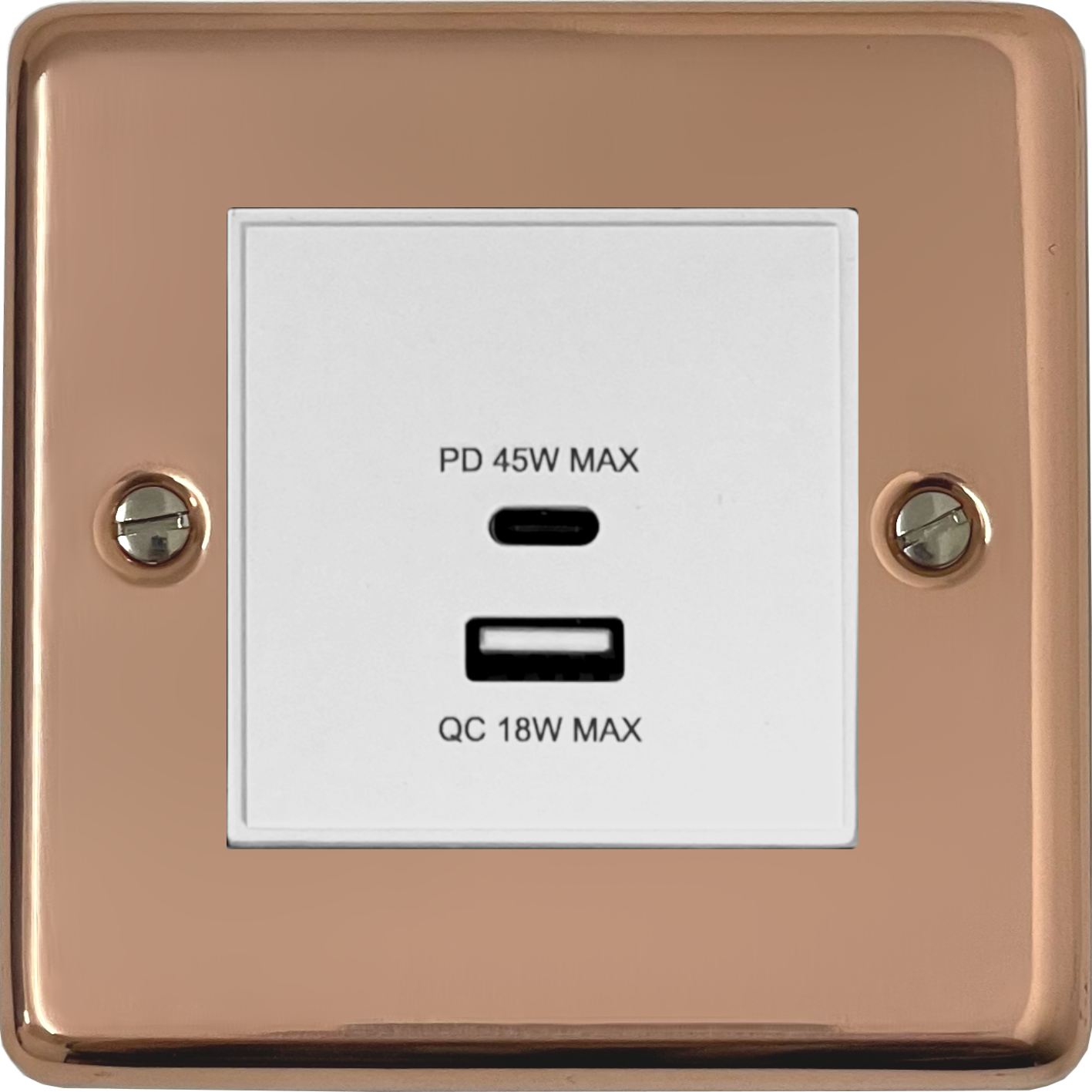 Contour Copper USB Charger (Dual USB A + C Quick Charge) (1 Gang/White Insert) - G+H CBC43W