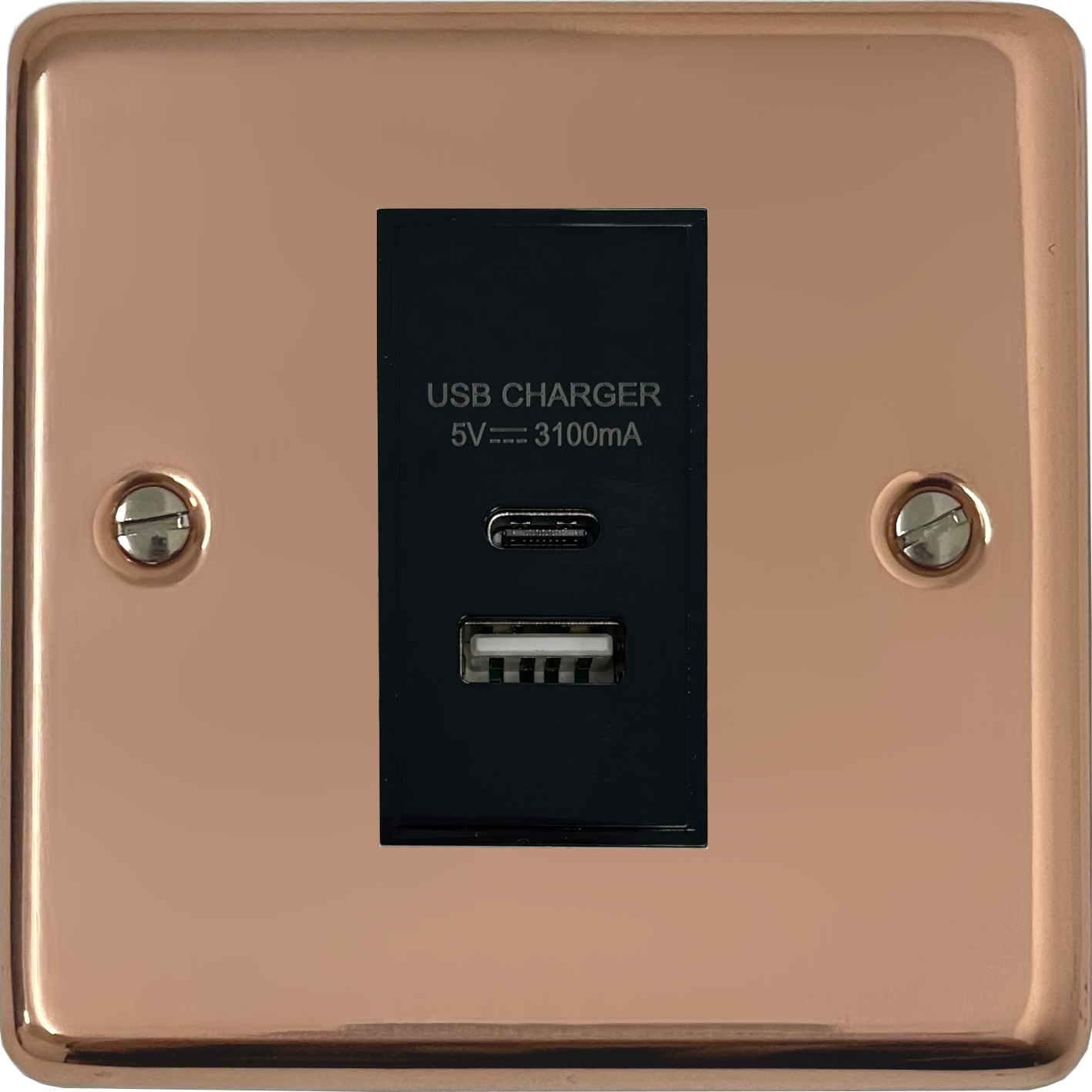 Contour Copper USB Charger (USB-A and USB-C) (1 Gang/Black Insert) - G+H CBC41B