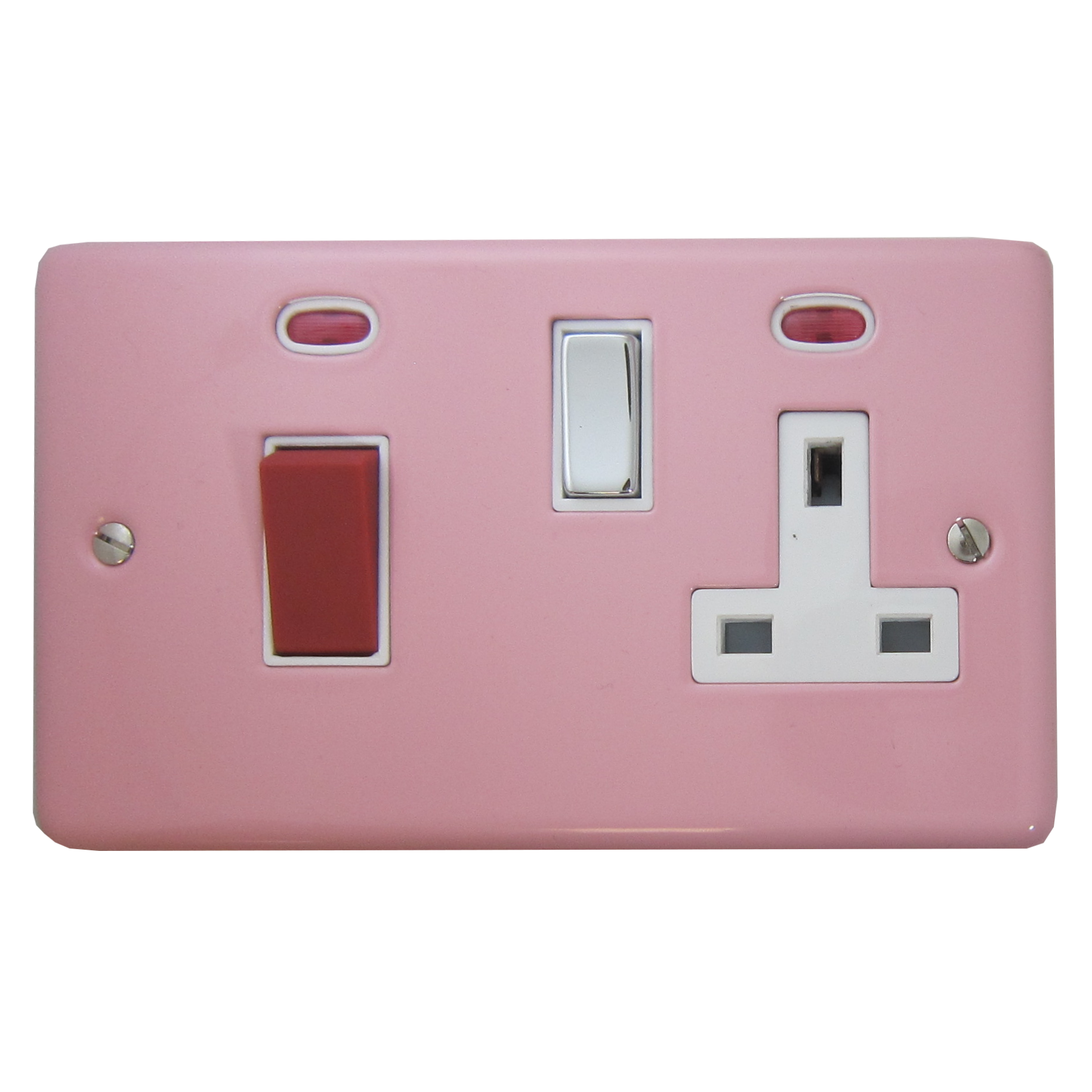 Contour Gloss Pink Cooker Switch with Socket (White Insert/Polished Chrome Switch) - G+H CGP229