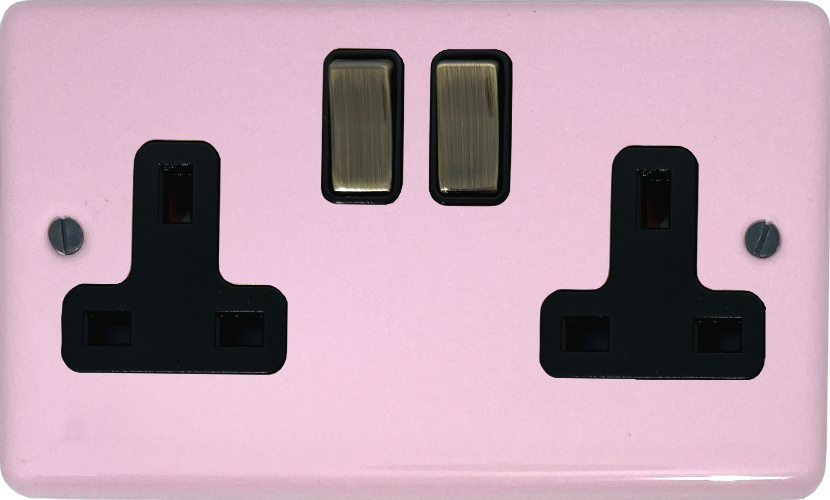 Contour Gloss Pink Double Socket (Black Insert/Antique Brass Switches) - G+H _CGP410