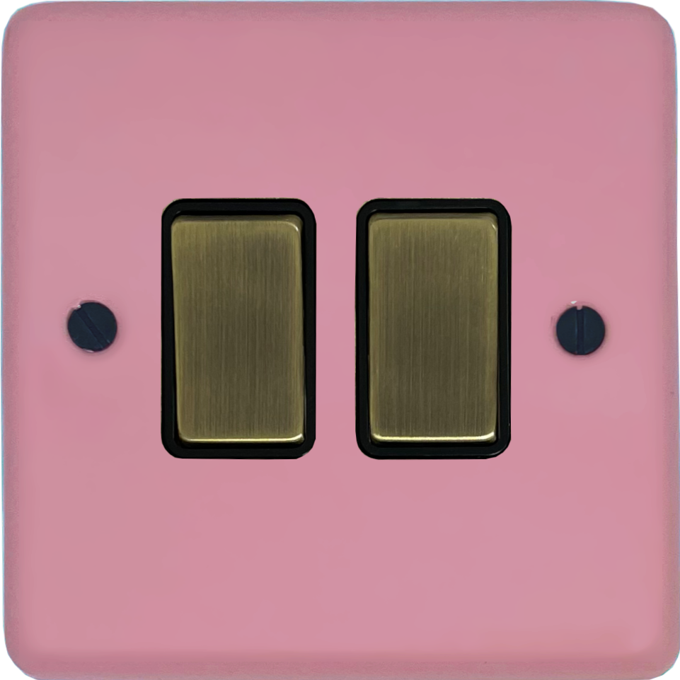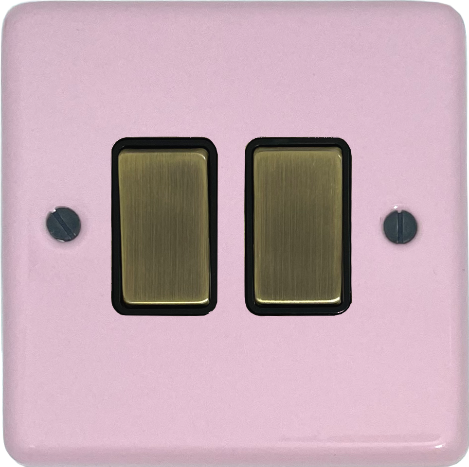 Contour Gloss Pink Light Switch (2 Gang/Black Insert/Antique Brass Switches) - G+H CGP302-AB