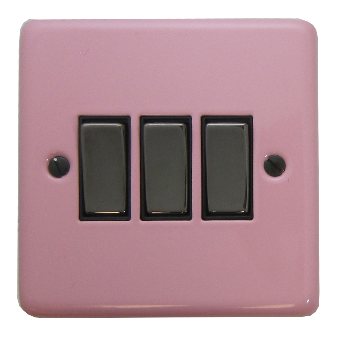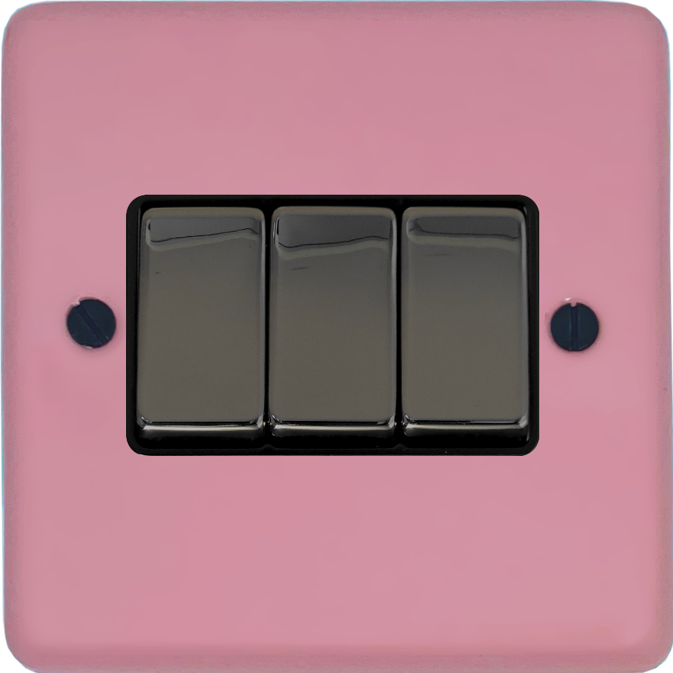 Contour Gloss Pink Light Switch (3 Gang/Black Insert/Black Nickel Switches) - G+H CGP303-BN