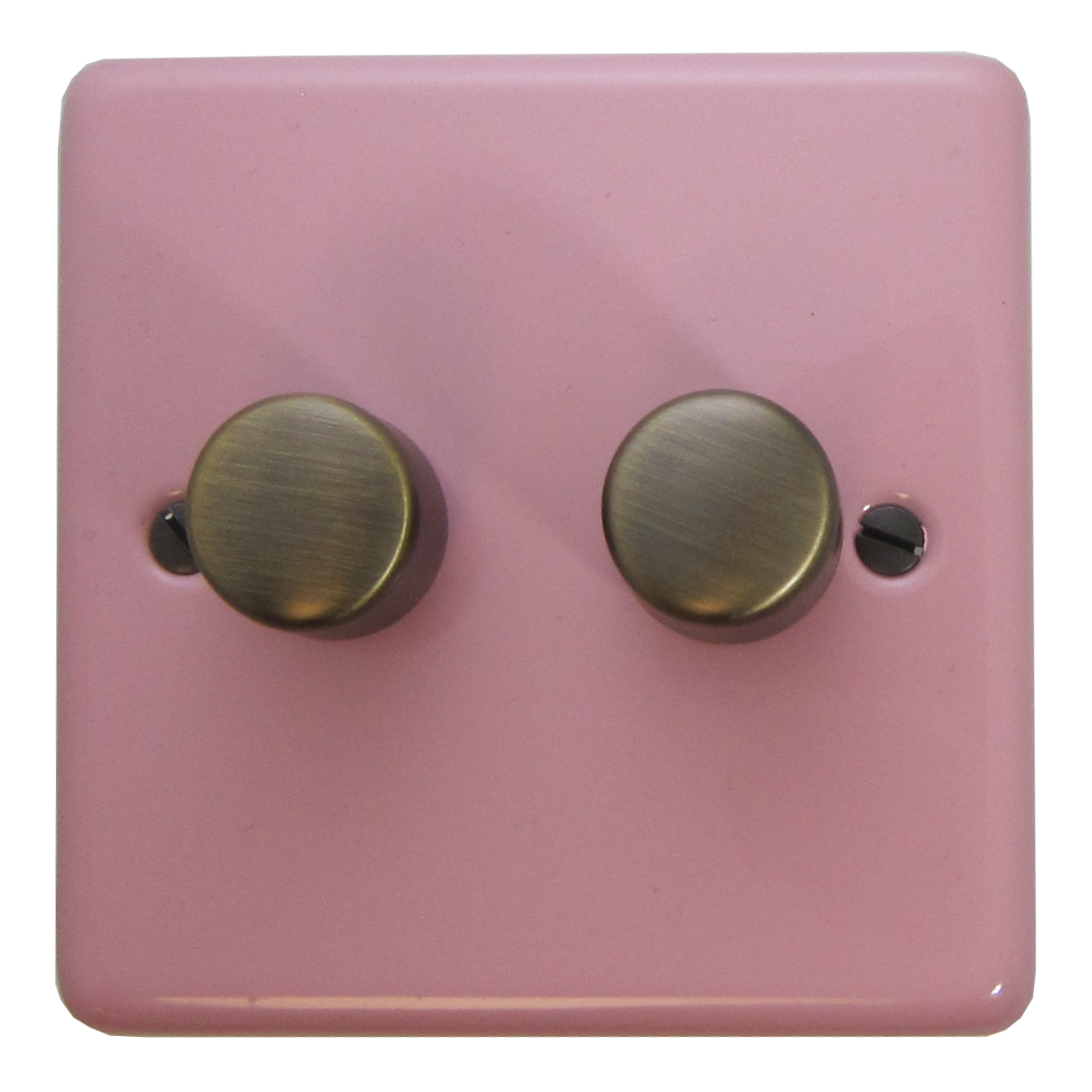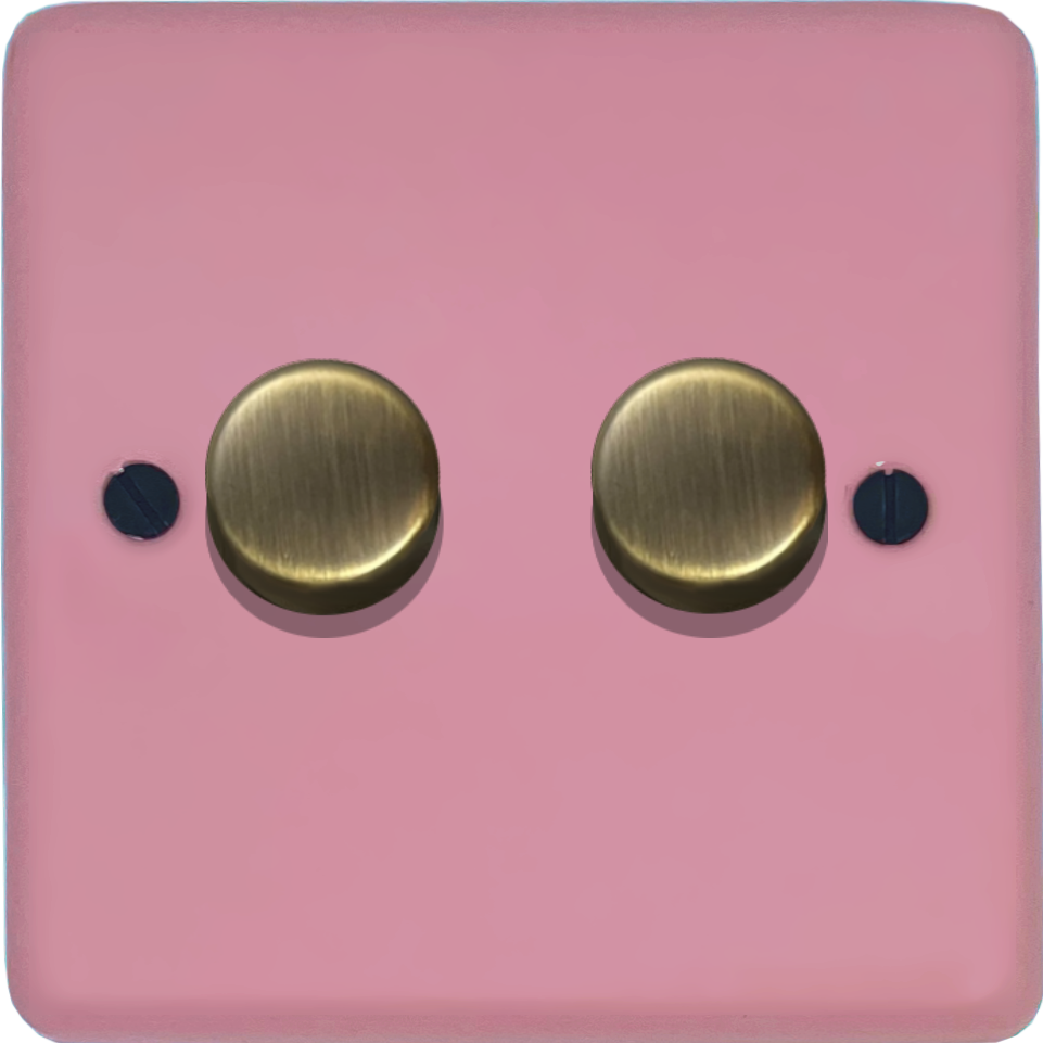 Contour Gloss Pink Push LED Dimmer (2 Gang/Antique Brass Caps) - G+H CGP522-AB