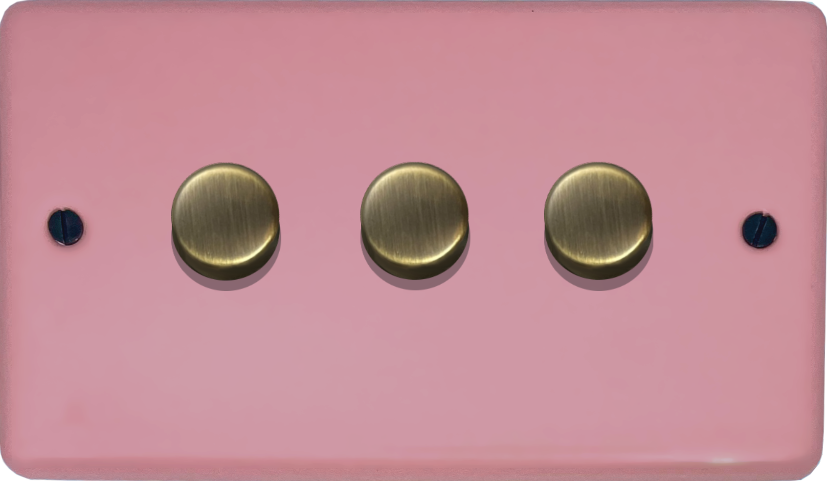 Contour Gloss Pink Push LED Dimmer (3 Gang/Antique Brass Caps) - G+H CGP523-AB