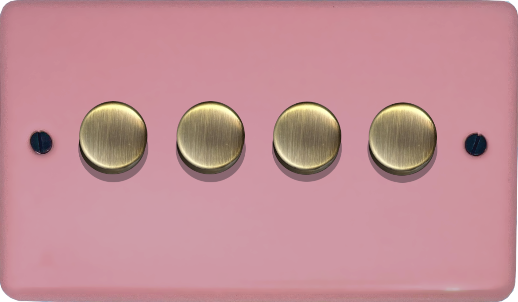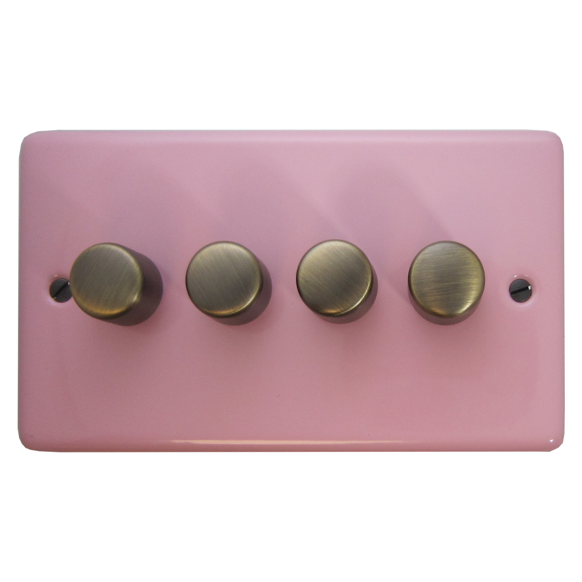 Contour Gloss Pink Push LED Dimmer (4 Gang/Antique Brass Cap) - G+H CGP524-AB