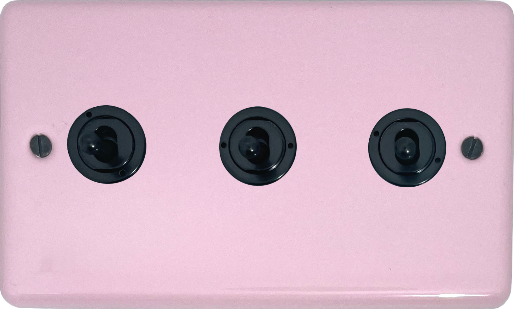 Contour Gloss Pink Toggle Switch (3 Gang/Flat Black Toggle) - G+H CGP383-FBK