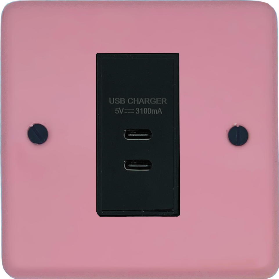 Contour Gloss Pink USB Charger (2x USB-C) (1 Gang/Black Insert) - G+H CGP42B