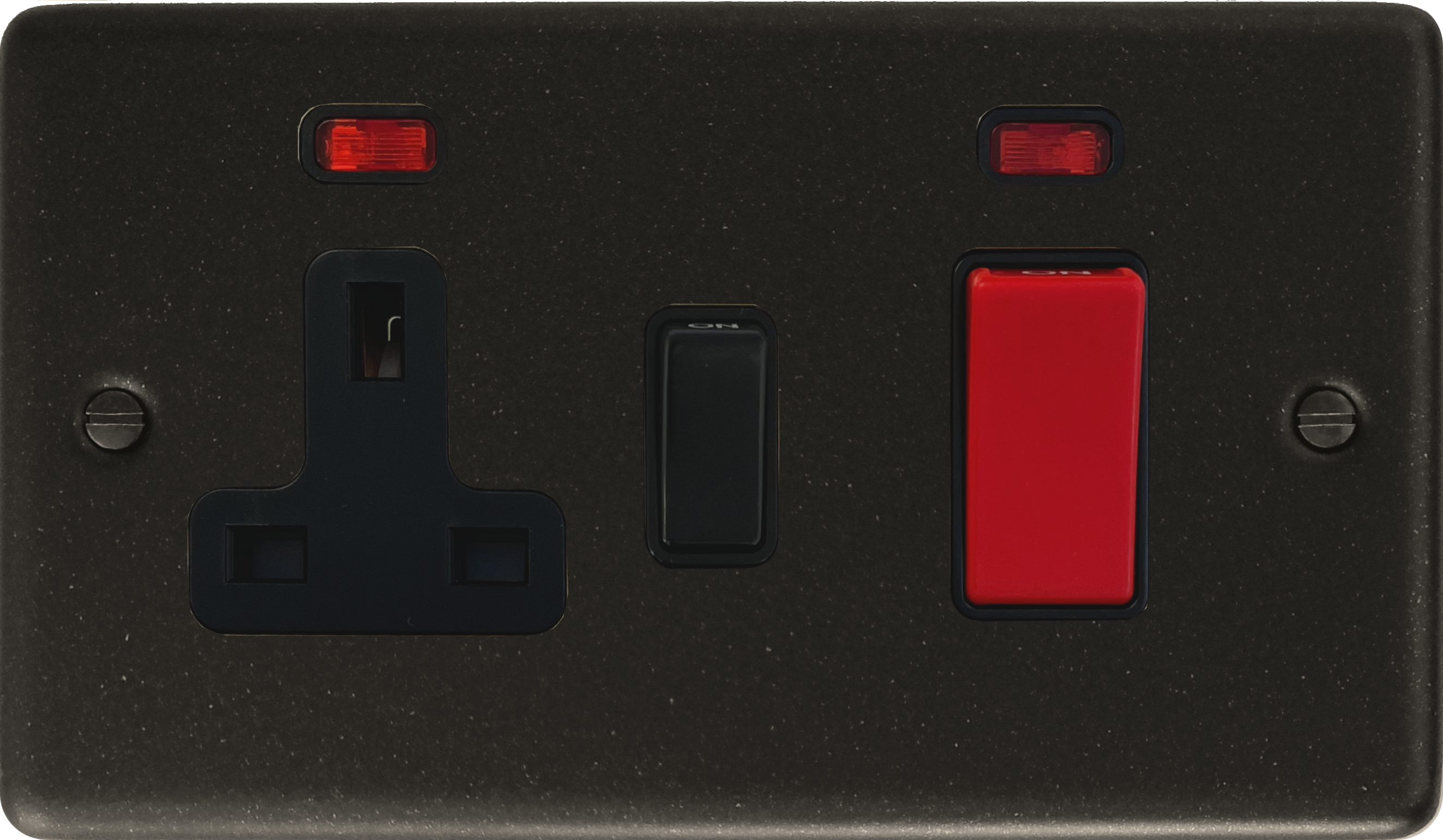 Contour Graphite Cooker Switch with Socket (Black Plastic Switch) - G+H CG29B