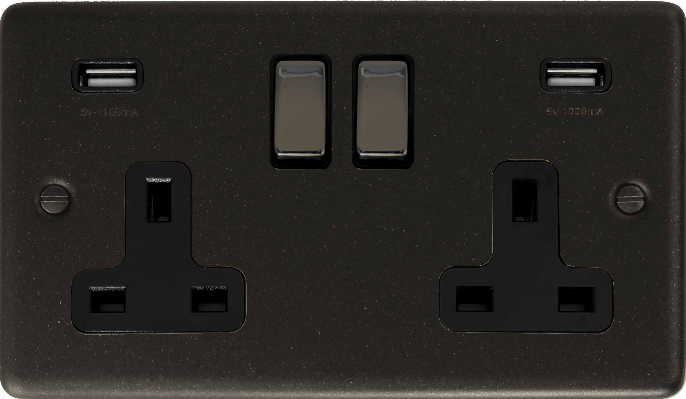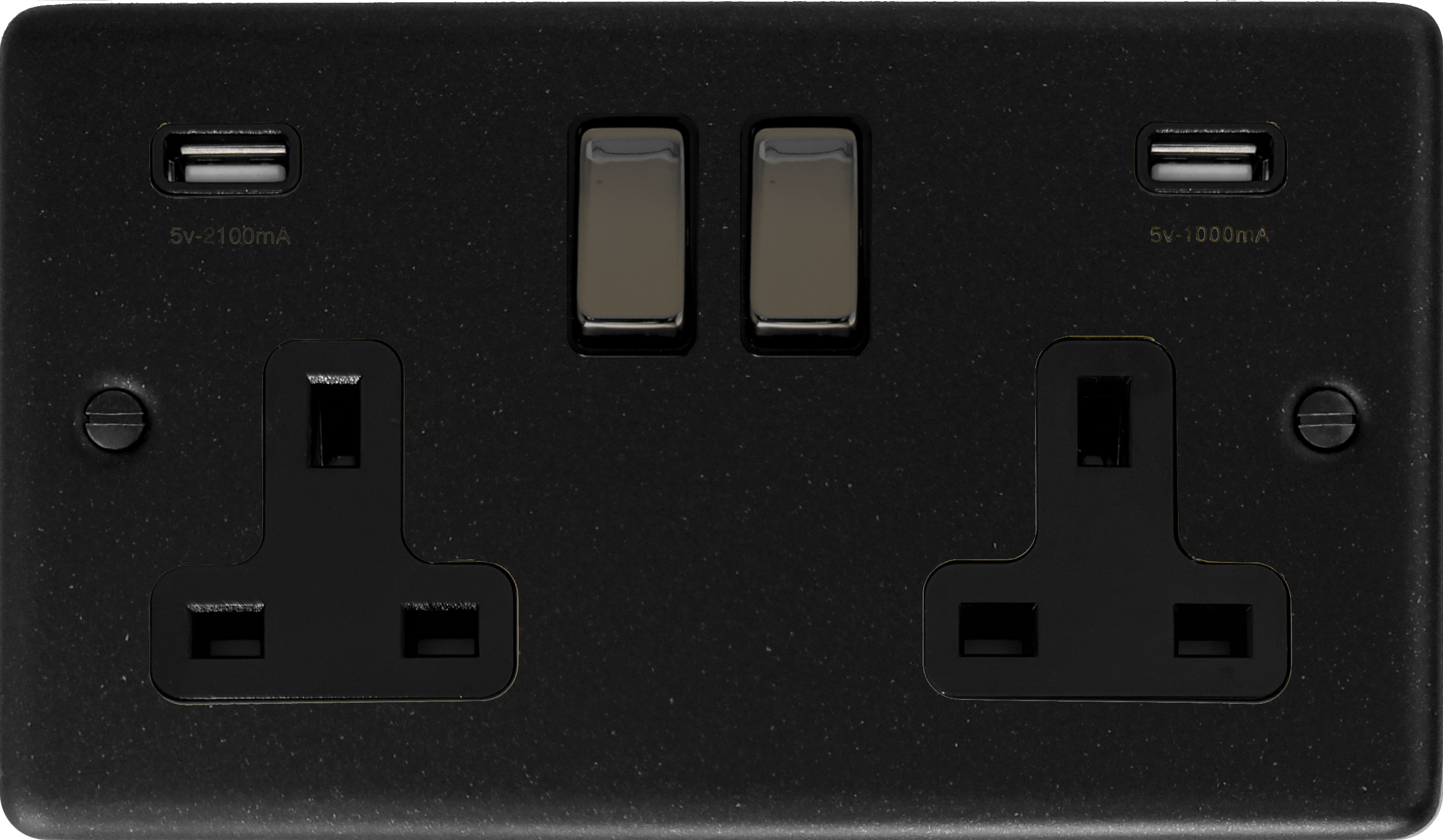 Contour Graphite Double Socket with USB (Black Nickel Switches) - G+H CG3910