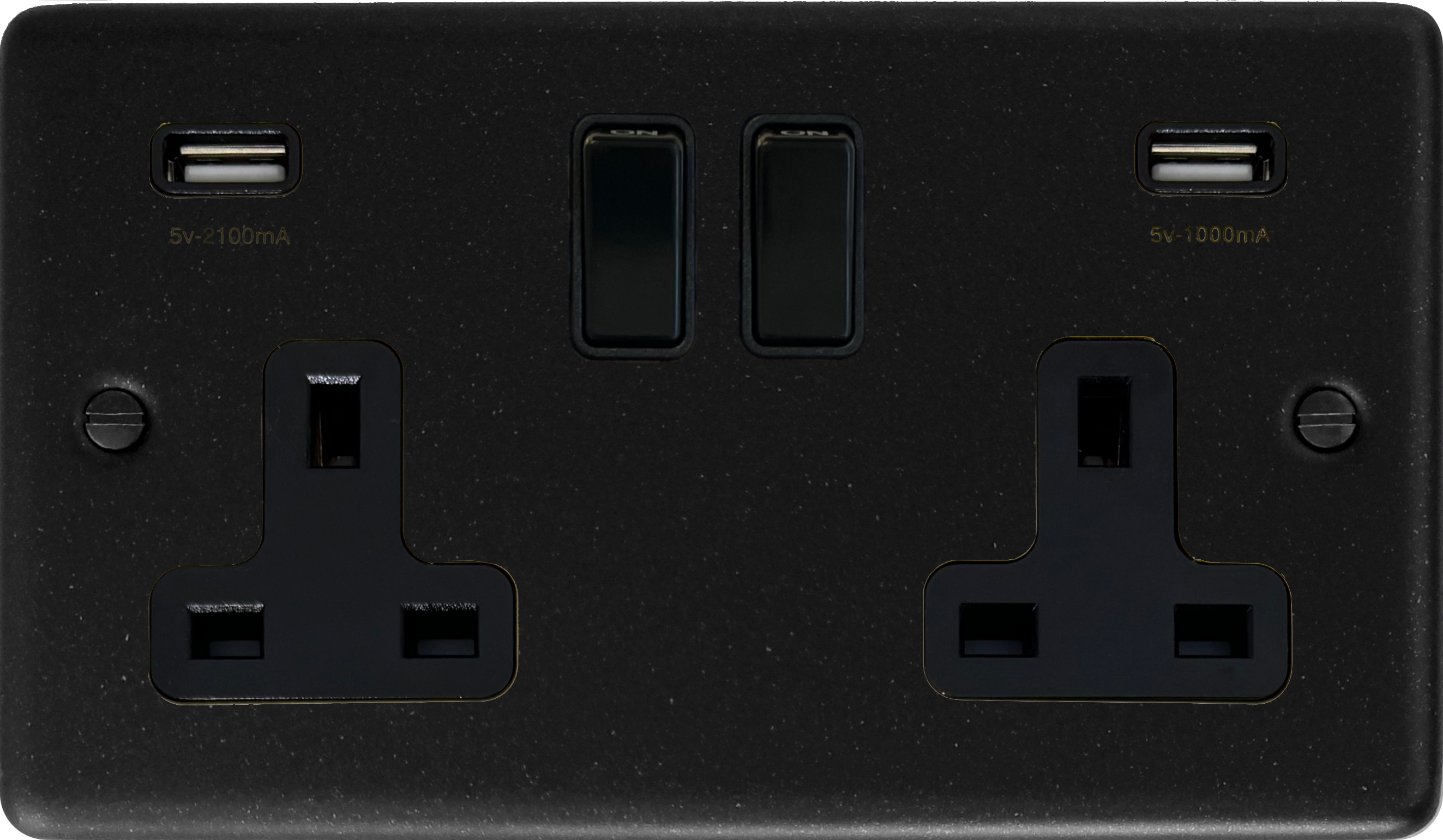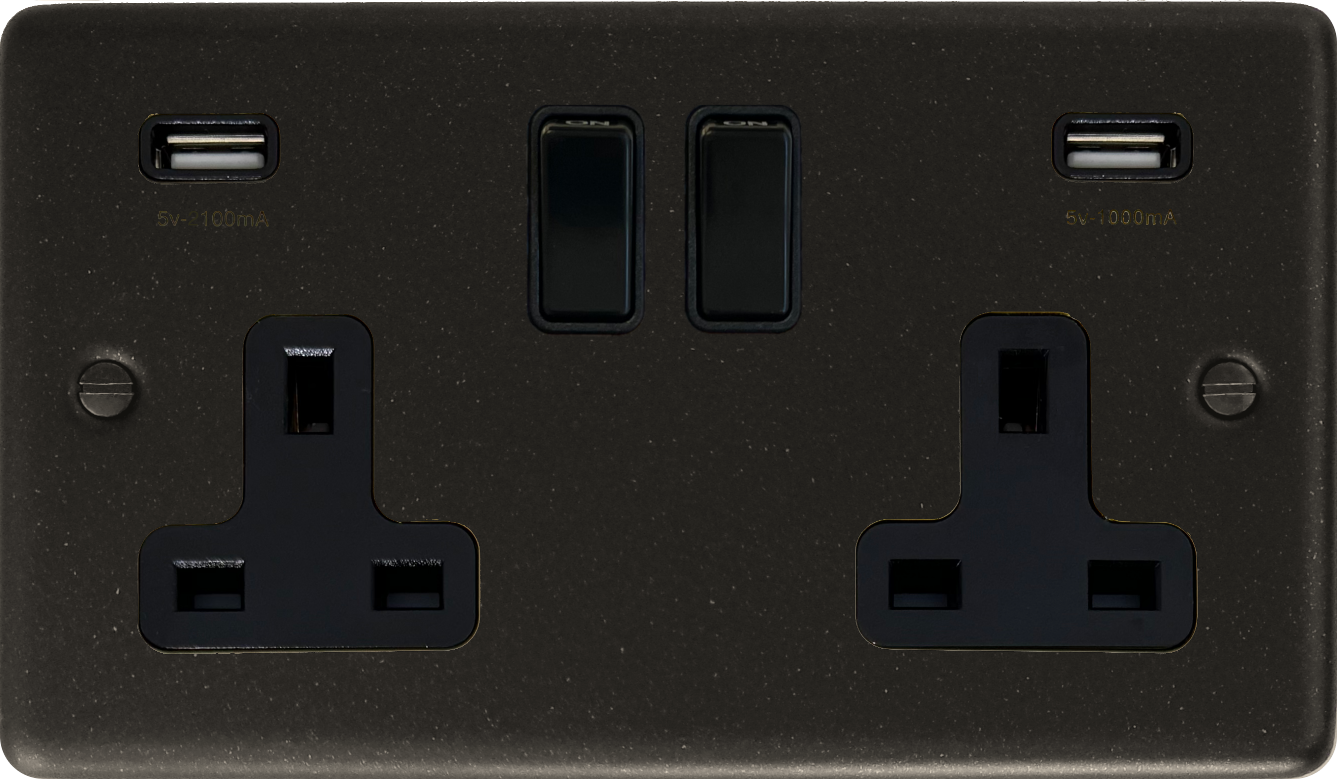 Contour Graphite Double Socket with USB (Black Plastic Switches) - G+H CG910B