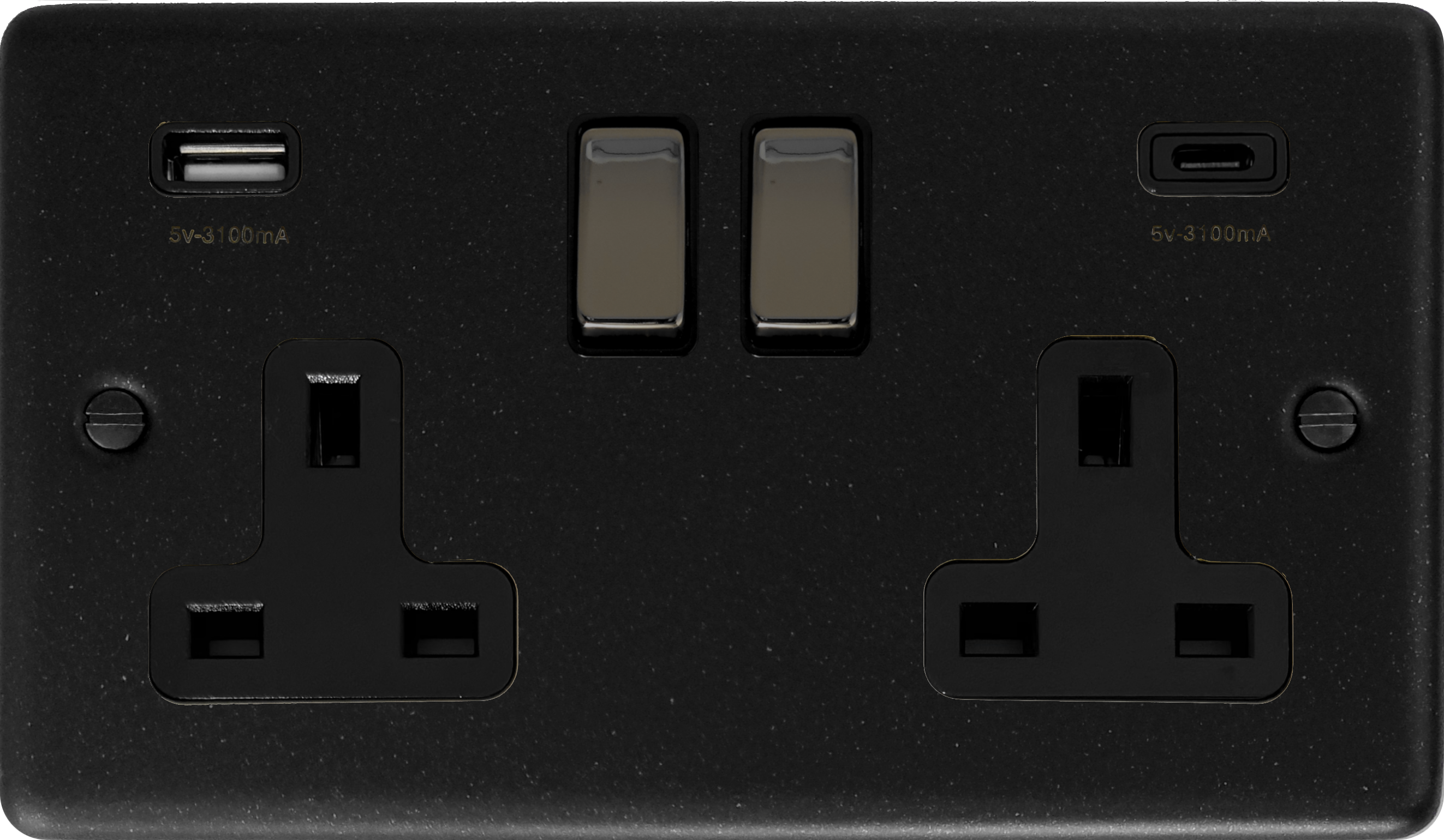 Contour Graphite Double Socket with USB (USB-A and USB-C/Black Insert/Black Nickel Switch)