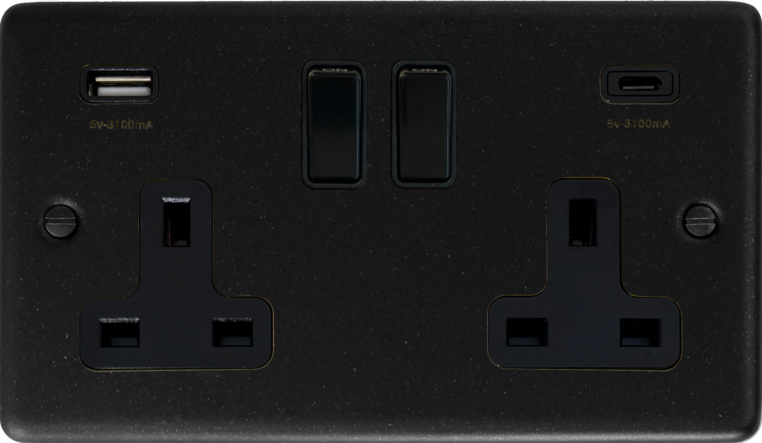 Contour Graphite Double Socket with USB (USB-A and USB-C/Black Insert/Black Plastic Switches) - G+H CG911B