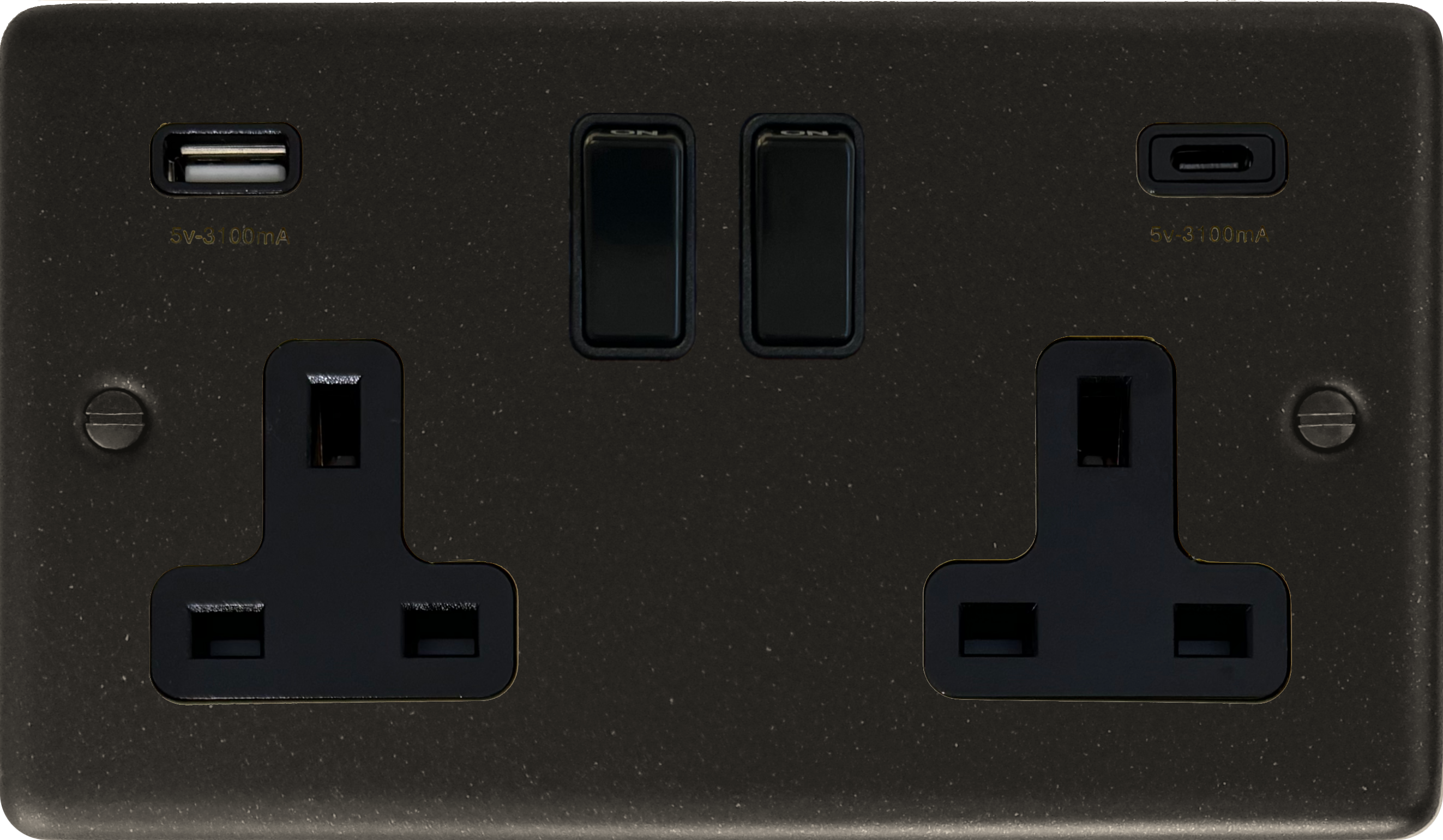 Contour Graphite Double Socket with USB (USB-A and USB-C/Black Insert/Black Plastic Switches)