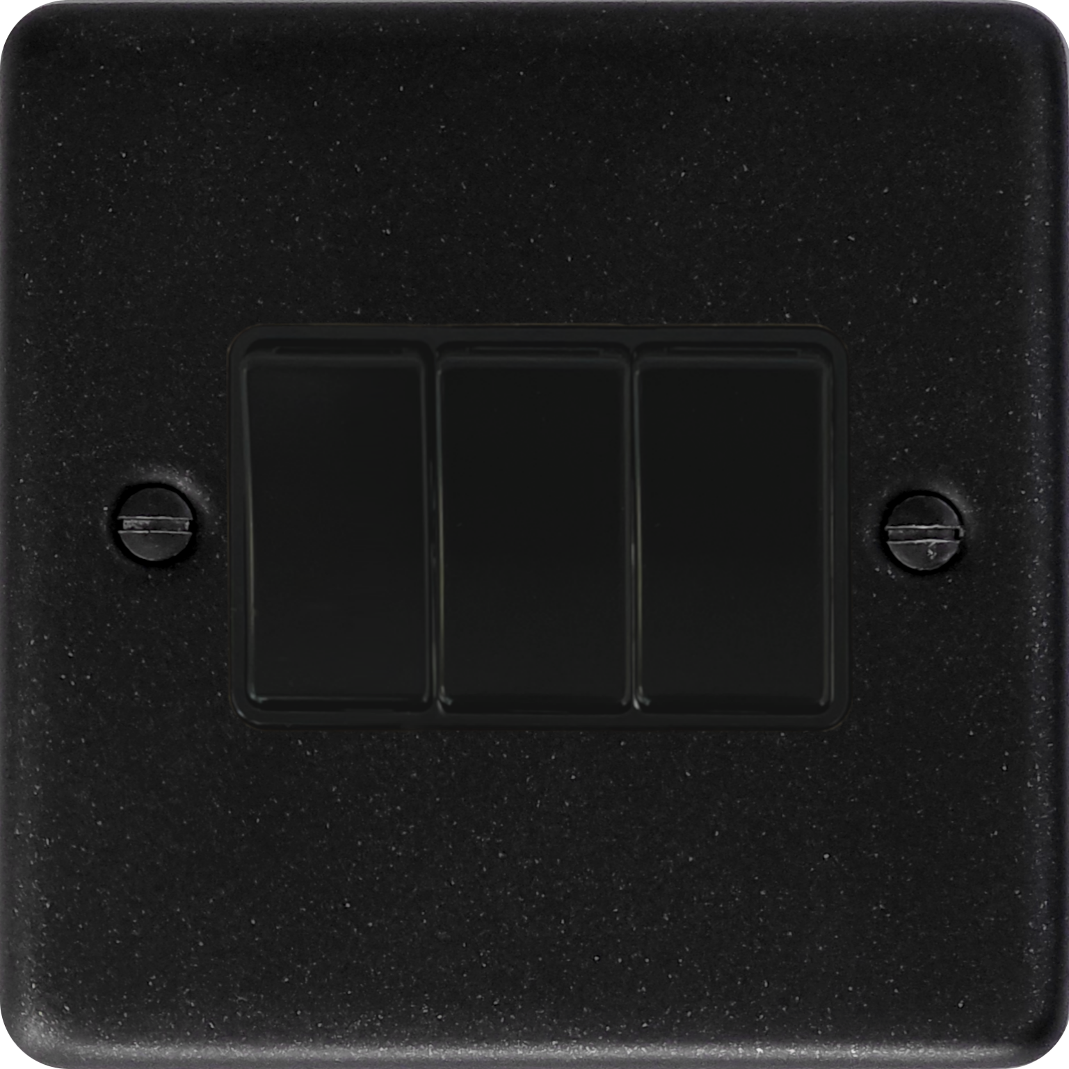 Contour Graphite Light Switch (3 Gang/Black Plastic Switch) - G+H CG3B