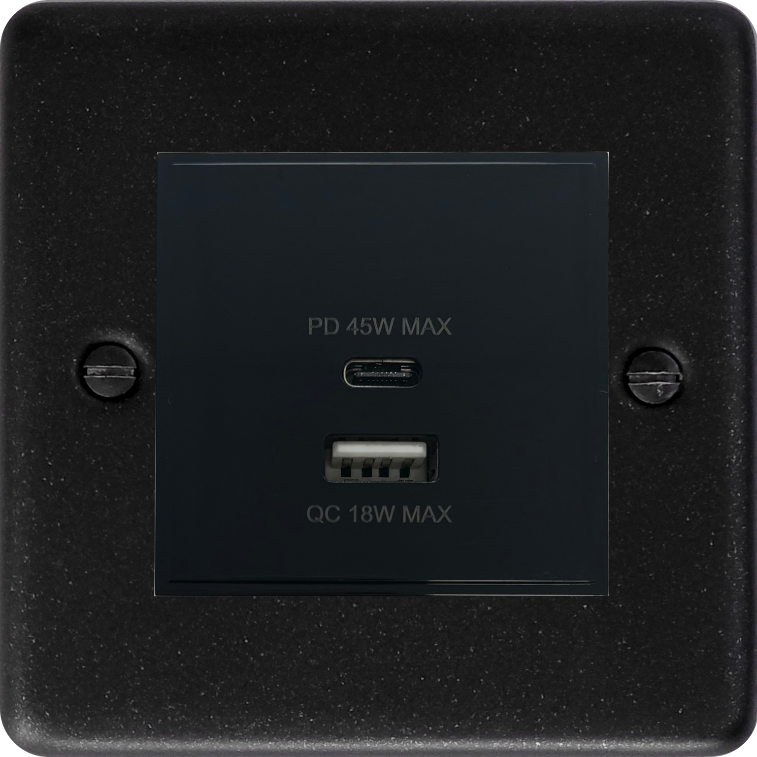 Contour Graphite USB Charger (Dual USB A + C Quick Charge) (1 Gang) - G+H CG43B