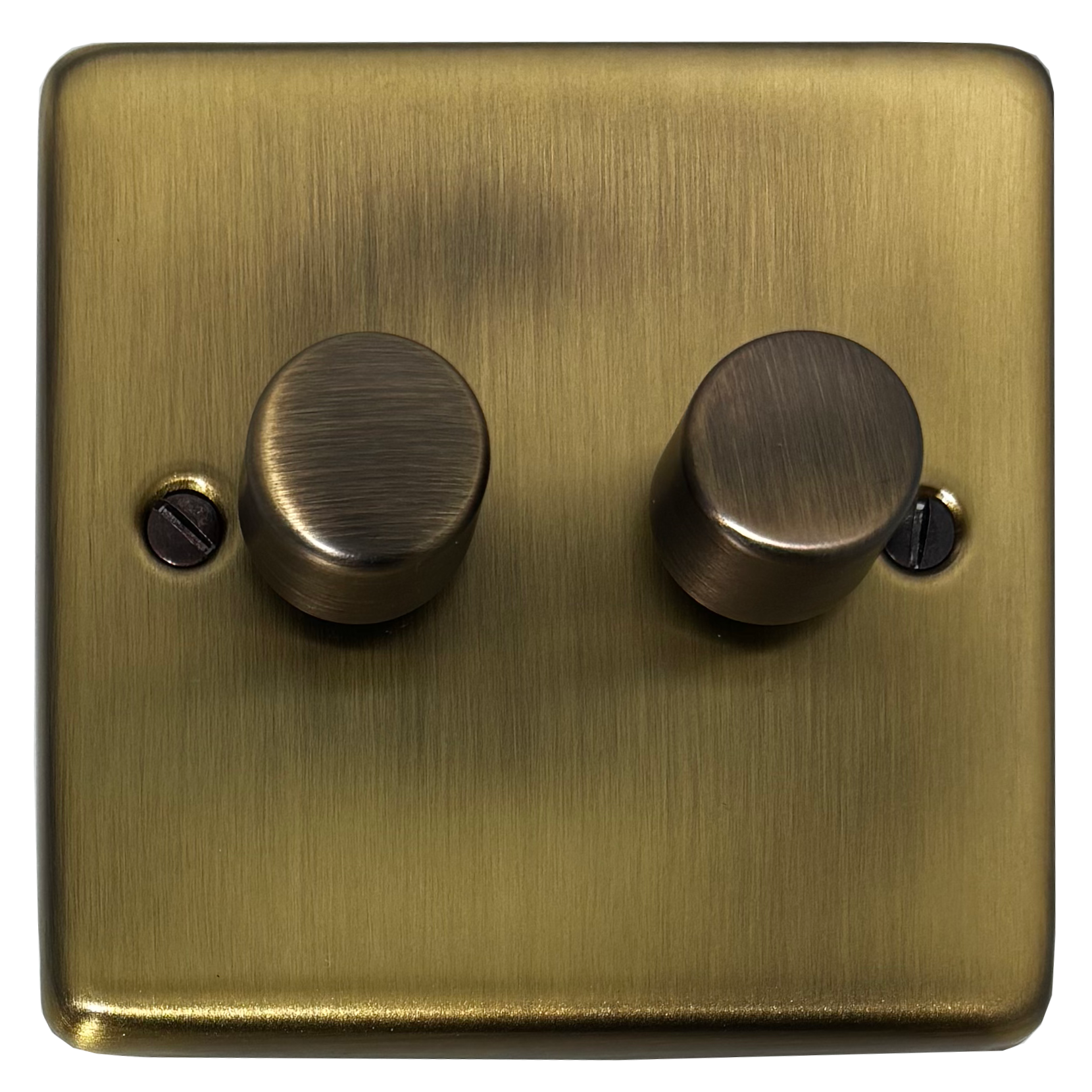 Contour Light Antique Brass Push Dimmer (2 Gang/400W) - G+H CLAB12