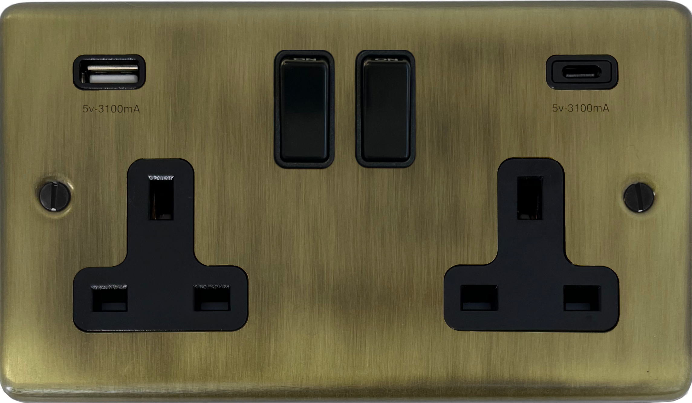 Contour Light Antique Brass Socket with USB (2 Gang/USB-A and USB-C/Black Switches) - G+H CLAB911B