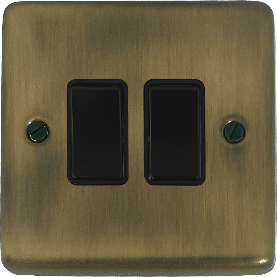 Contour Light Antique Brass Switch (2 Gang/Black Switches) - G+H CLAB2B