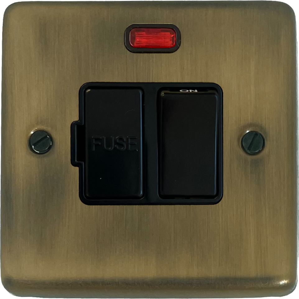Contour Light Antique Brass Switched Fused Spur with Neon (Black Switch) - G+H CLAB27B