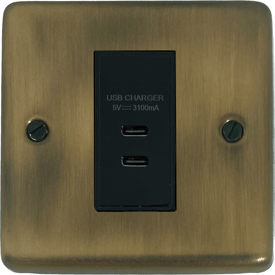 Contour Light Antique Brass USB Charger (2x USB-C) (1 Gang) - G+H CLAB42B