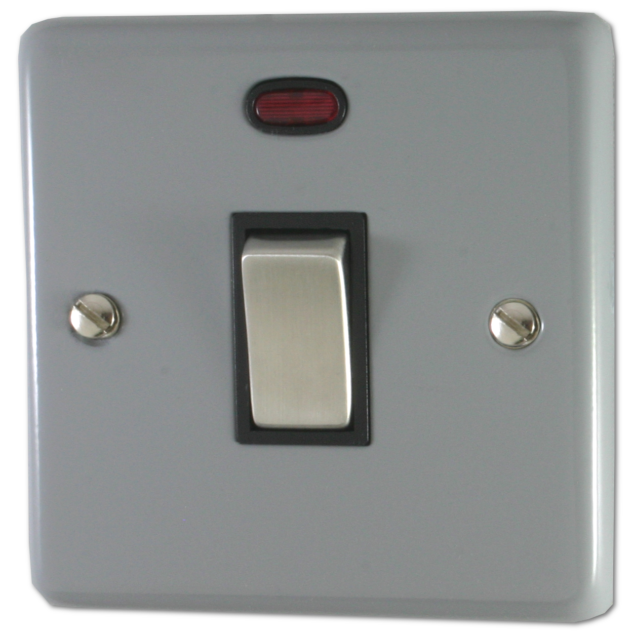 Contour Light Grey 20A DP Switch with Neon (Black insert/Metal Switch) - G+H CLG326