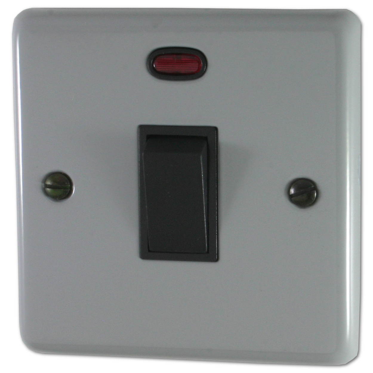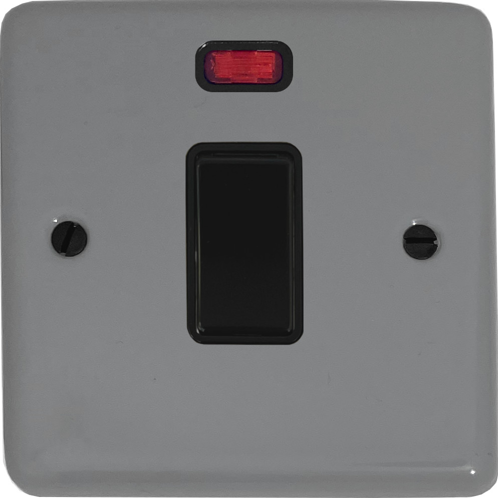 Contour Light Grey 20A DP Switch with Neon (Black Plastic Switch) - G+H CLG26B