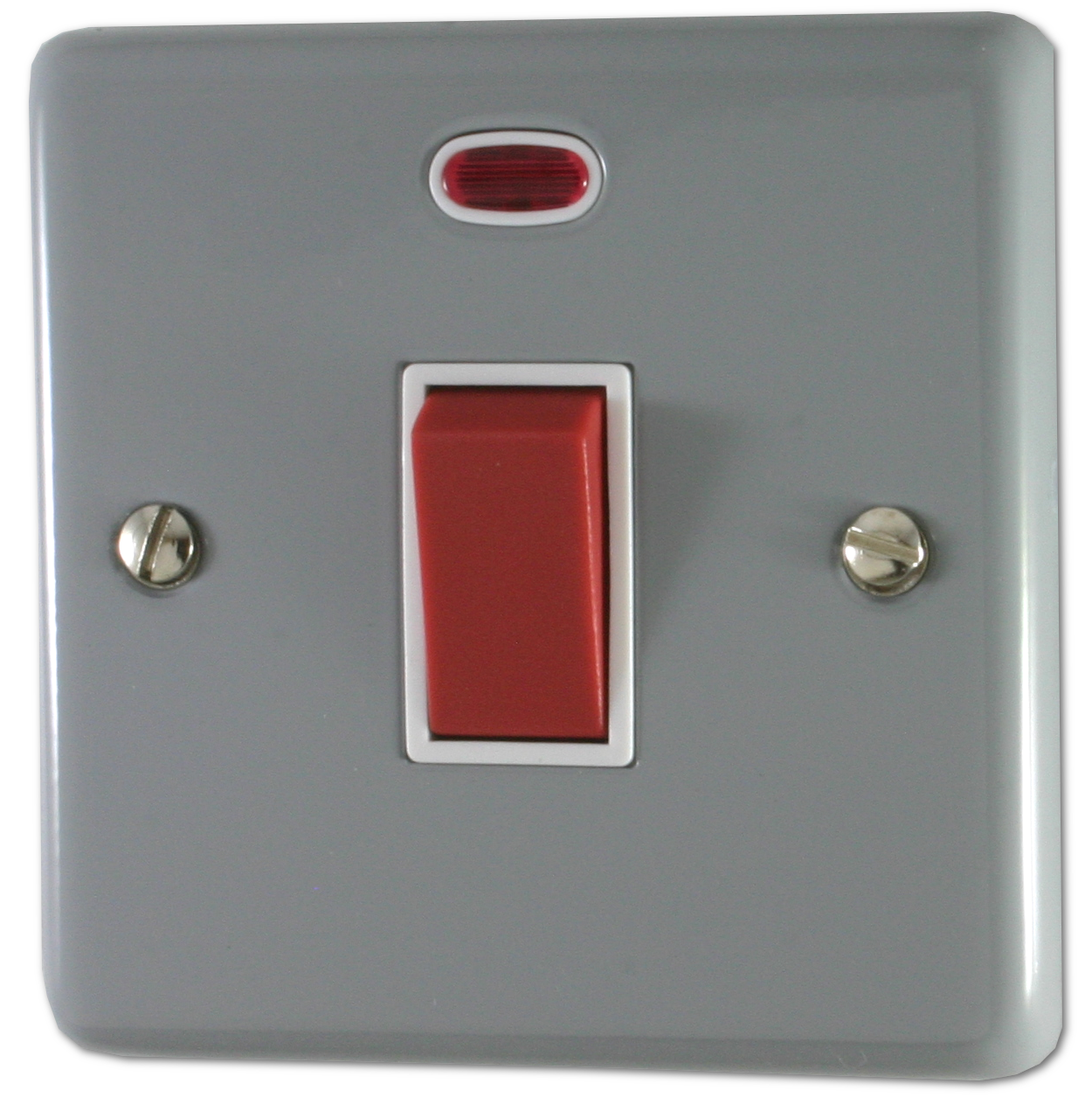 Contour Light Grey 45A DP Switch with Neon (Red Switch/White insert) - G+H CLG46W