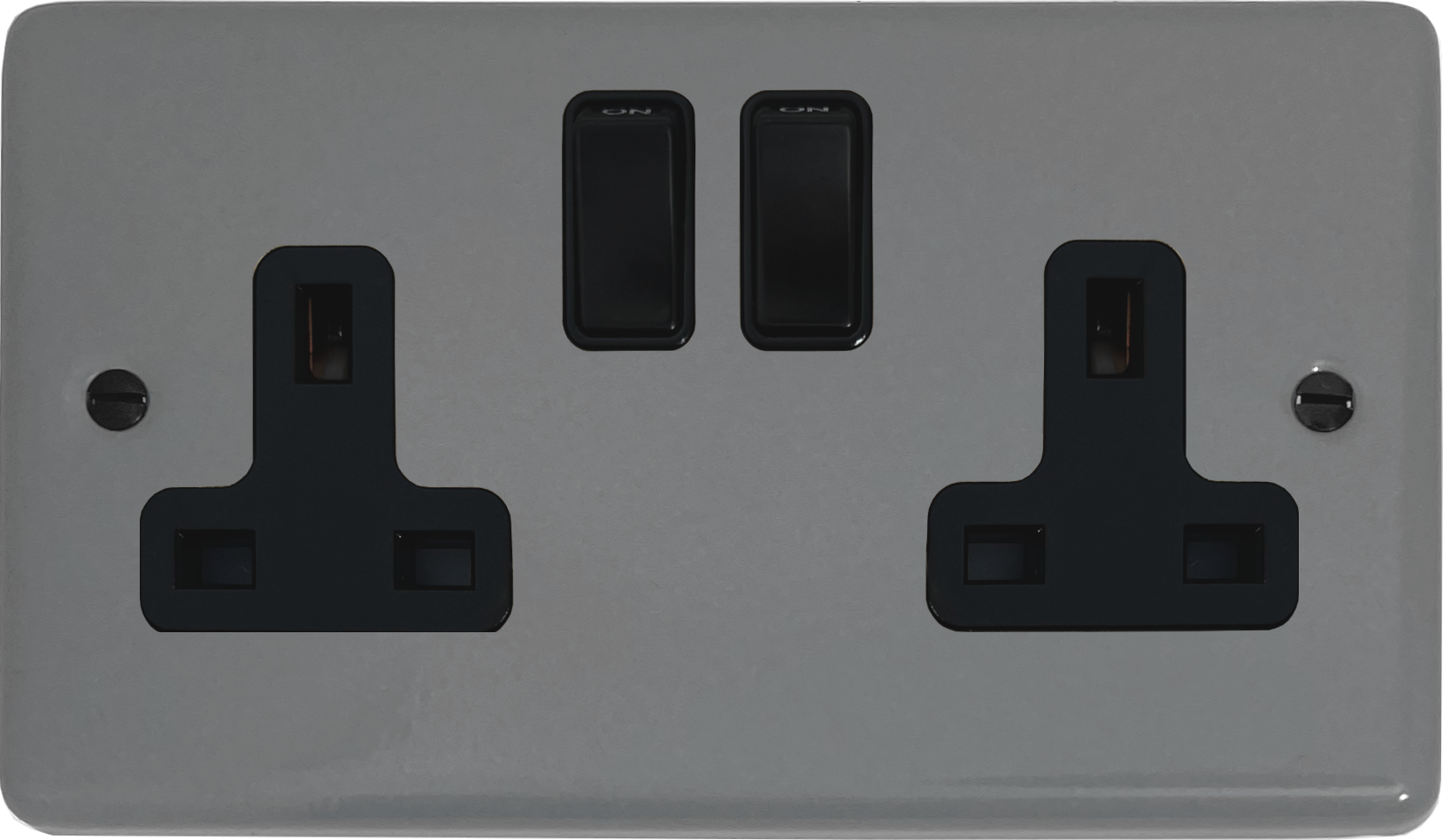 Contour Light Grey Double Socket (Black Plastic Switches) - G+H CLG10B