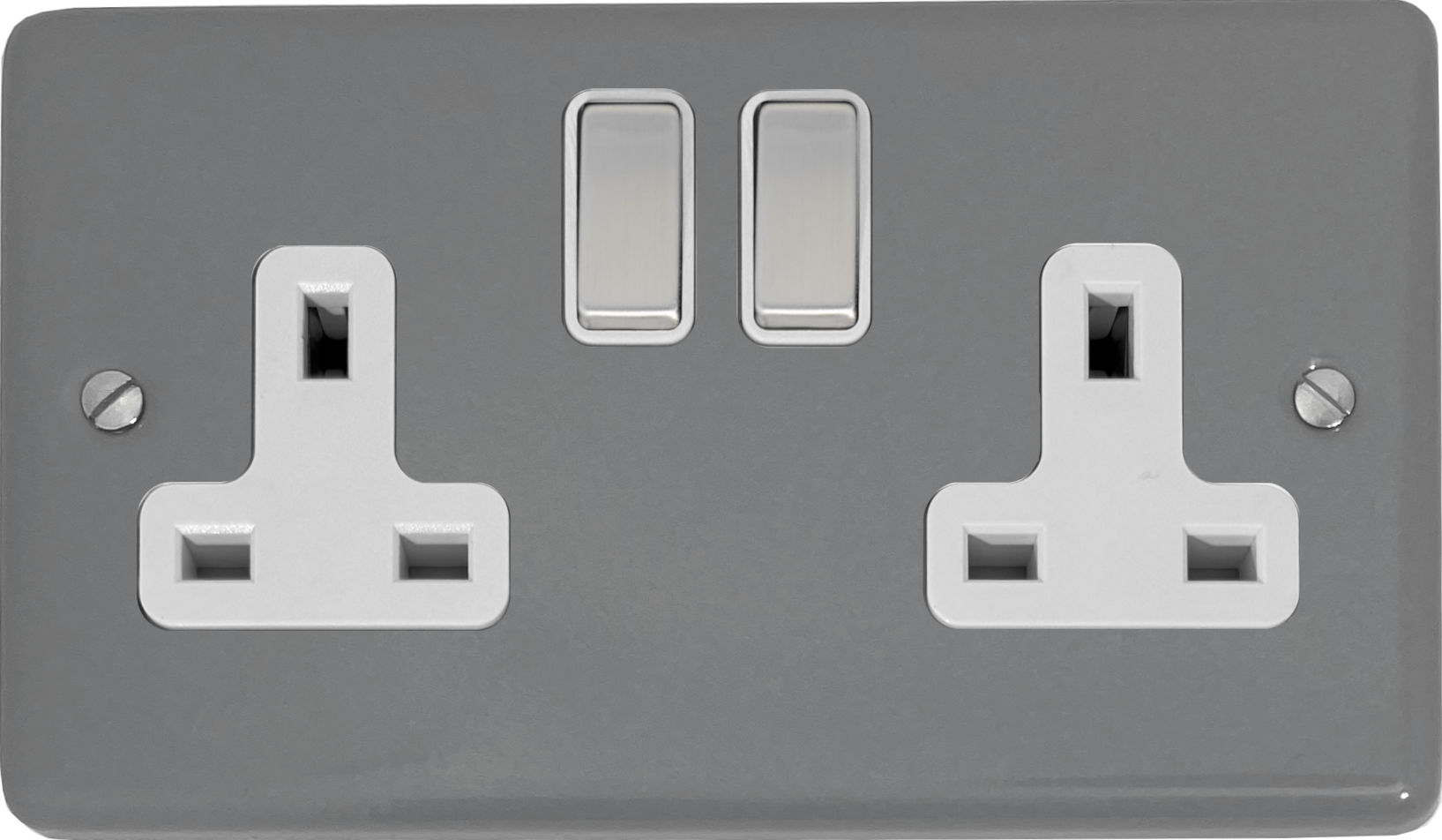 Contour Light Grey Double Socket (White insert/Metal Switches) - G+H CLG210