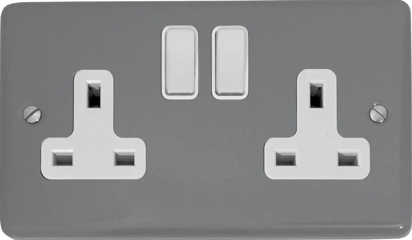 Contour Light Grey Double Socket (White Plastic Switches) - G+H CLG10W