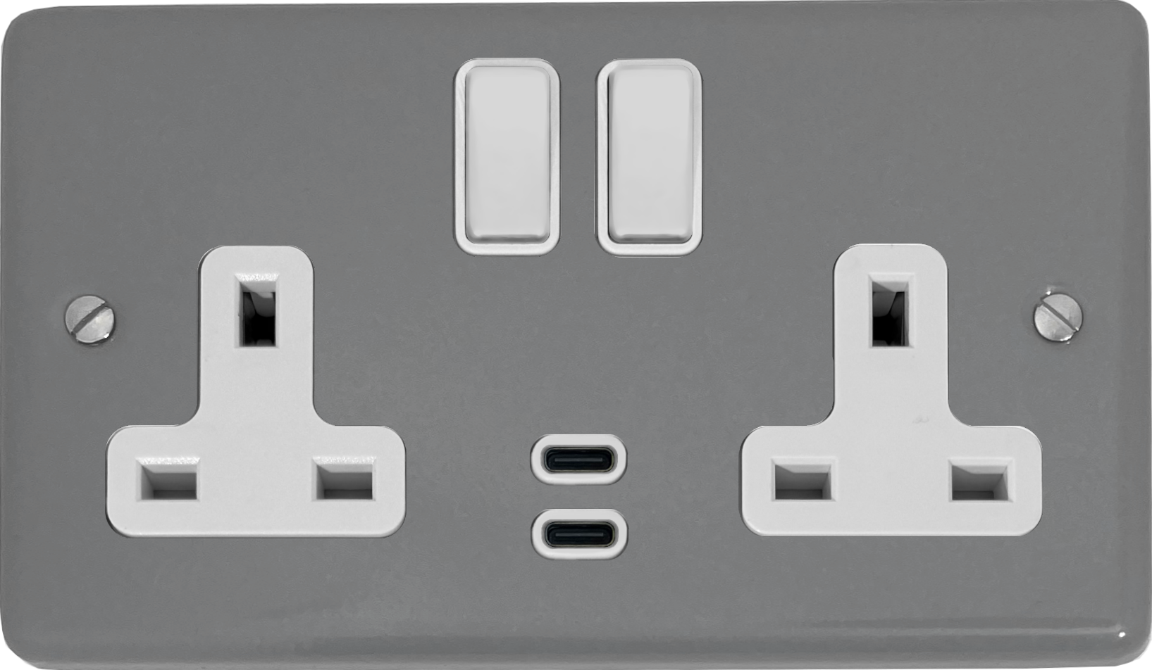 Contour Light Grey Double Socket with Dual USB-C (White Switches)