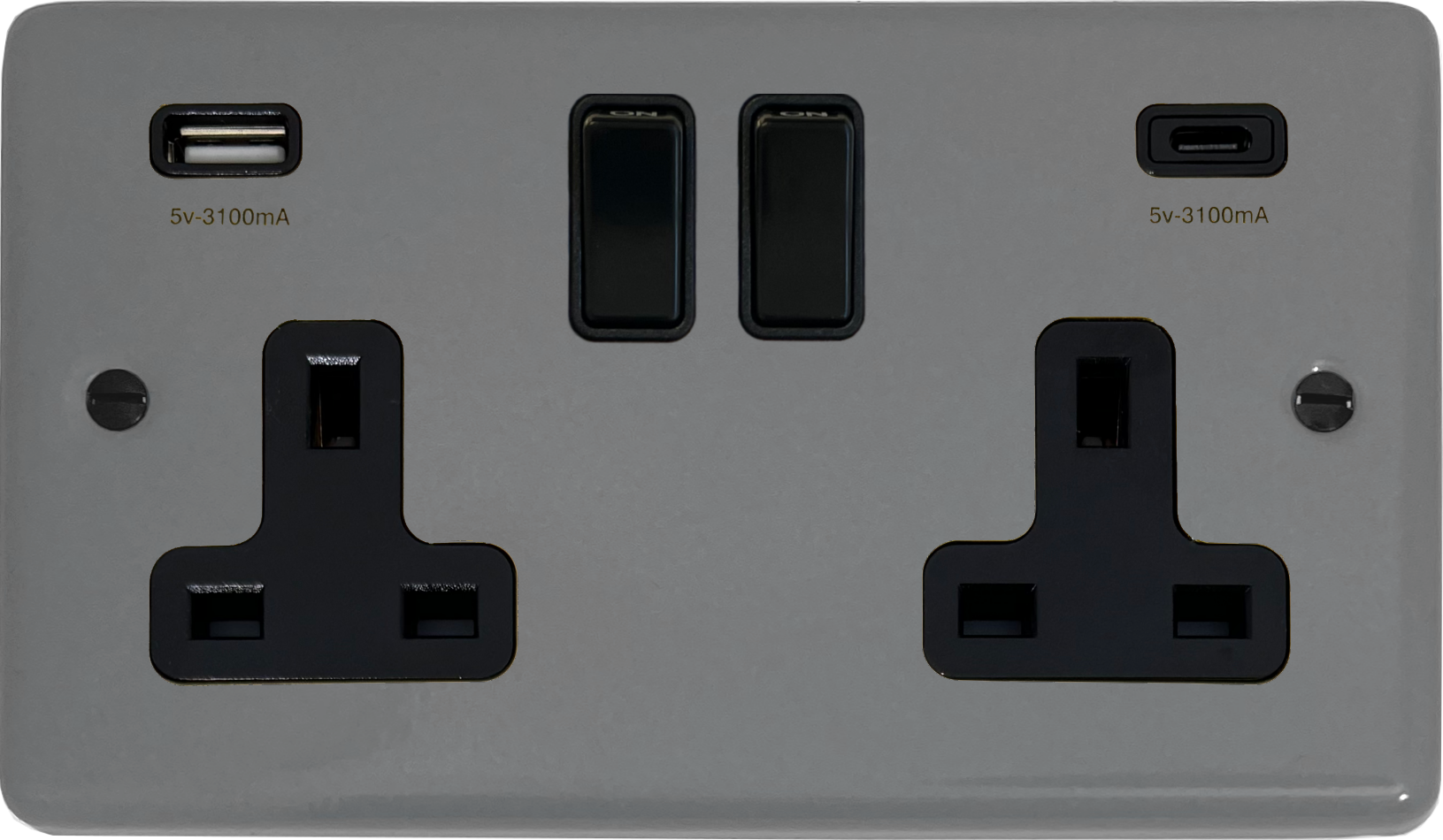 Contour Light Grey Double Socket with USB (USB-A and USB-C/Black Switches) - G+H CLG911B