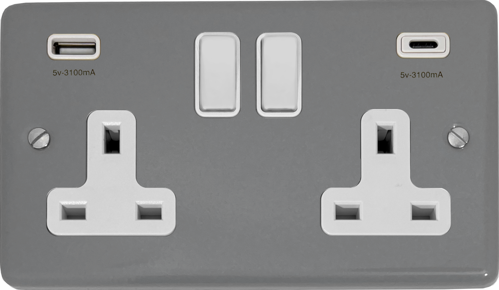 Contour Light Grey Double Socket with USB (USB-A and USB-C/White Switches) - G+H CLG911W