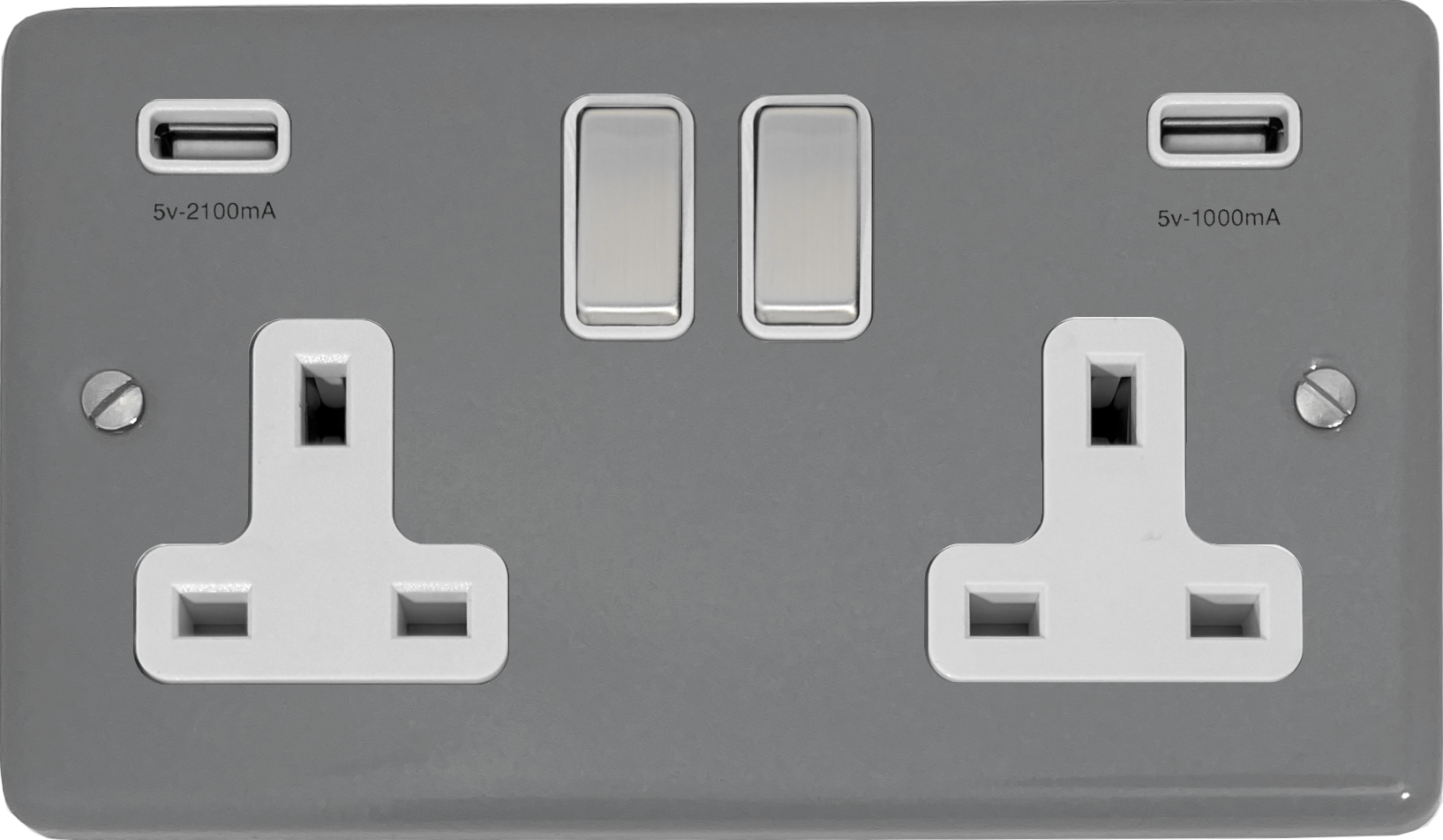 Contour Light Grey Double Socket with USB (White Inserts/Metal Switches) - G+H CLG2910