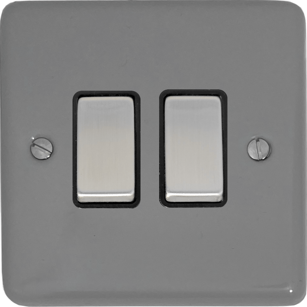 Contour Light Grey Light Switch (2 Gang/Black Insert/Metal Switch) - G+H CLG302