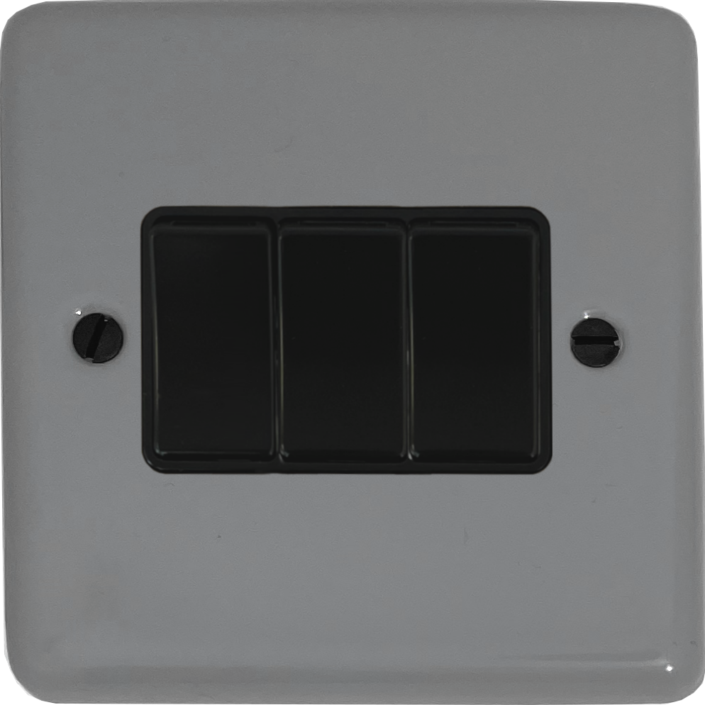 Contour Light Grey Light Switch (3 Gang/Black Plastic Switch) - G+H CLG3B