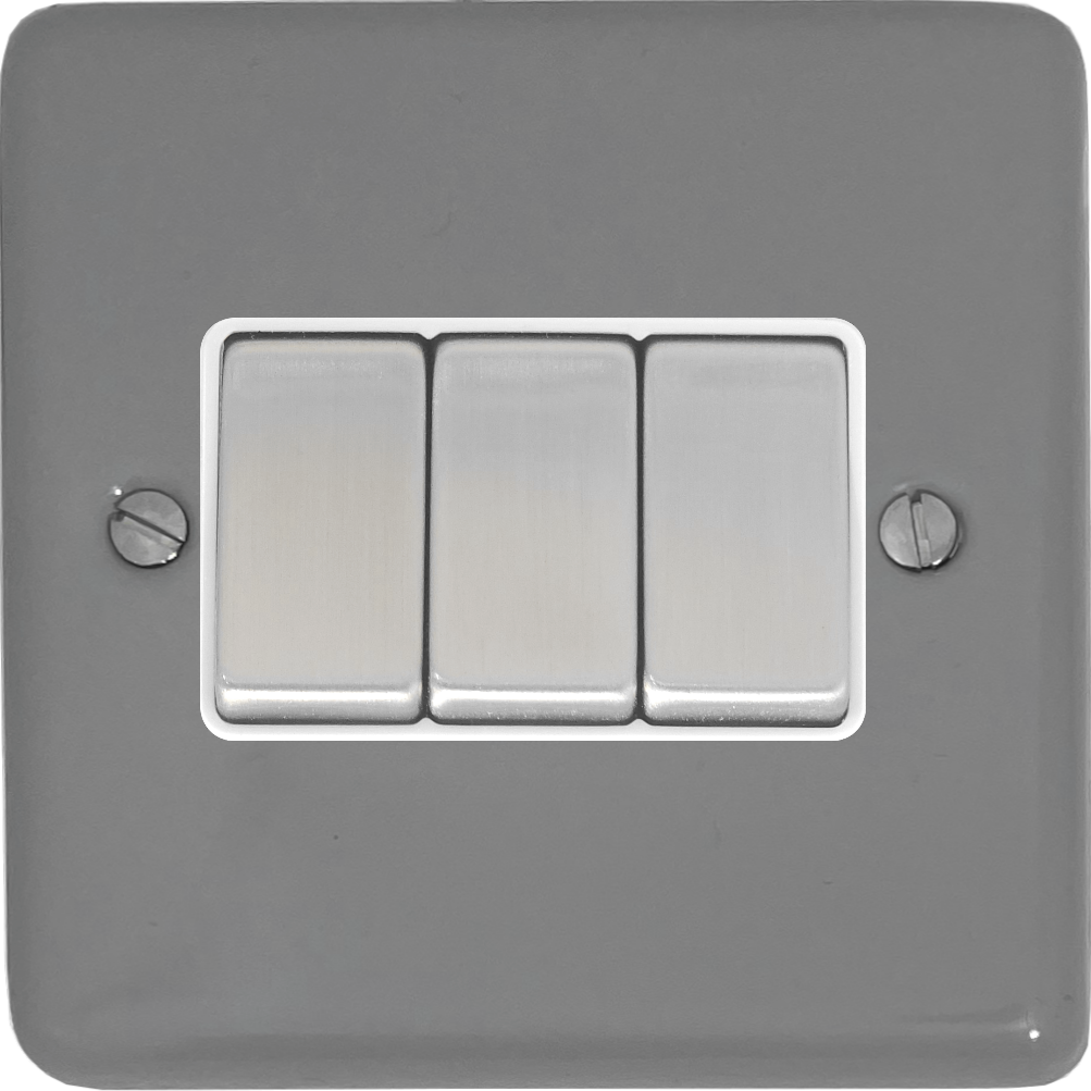 Contour Light Grey Light Switch (3 Gang/White Insert/ Metal Switch) - G+H CLG203