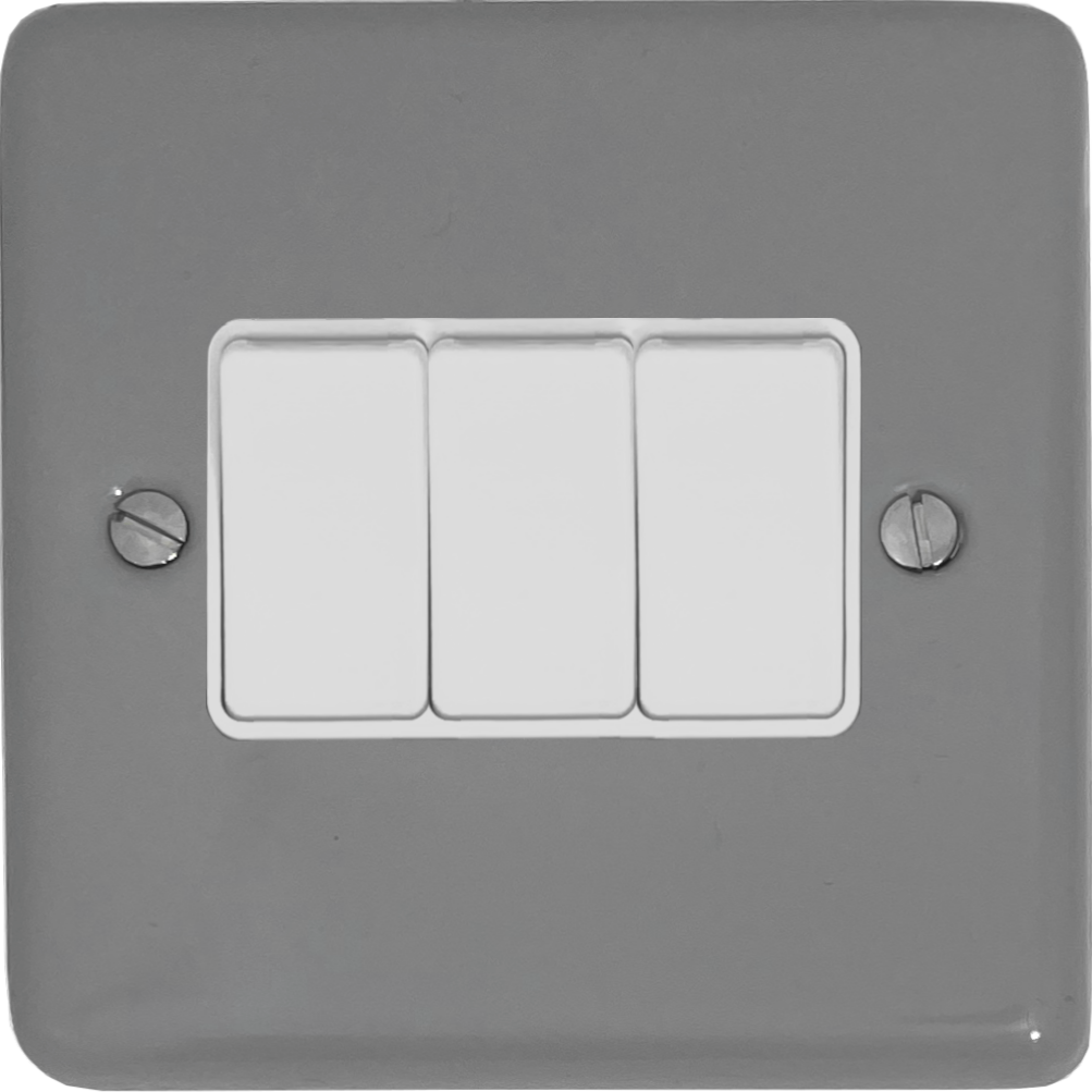 Contour Light Grey Light Switch (3 Gang/White Plastic Switch) - G+H CLG3W