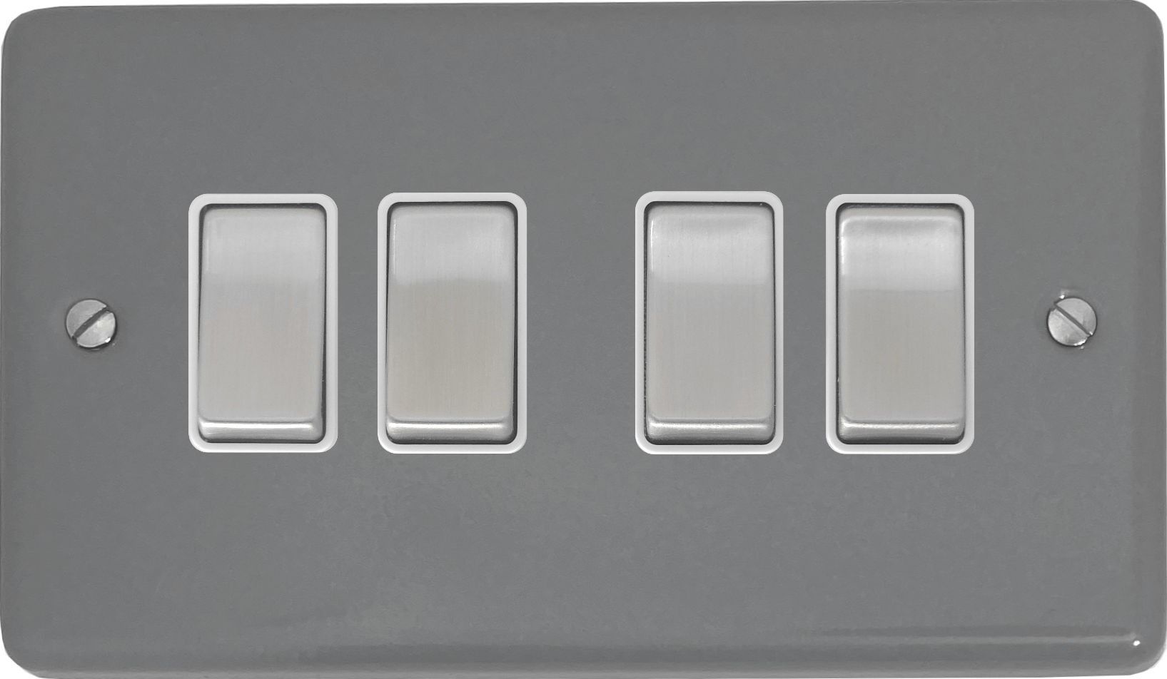 Contour Light Grey Light Switch (4 Gang/White Insert/ Metal Switch) - G+H CLG204
