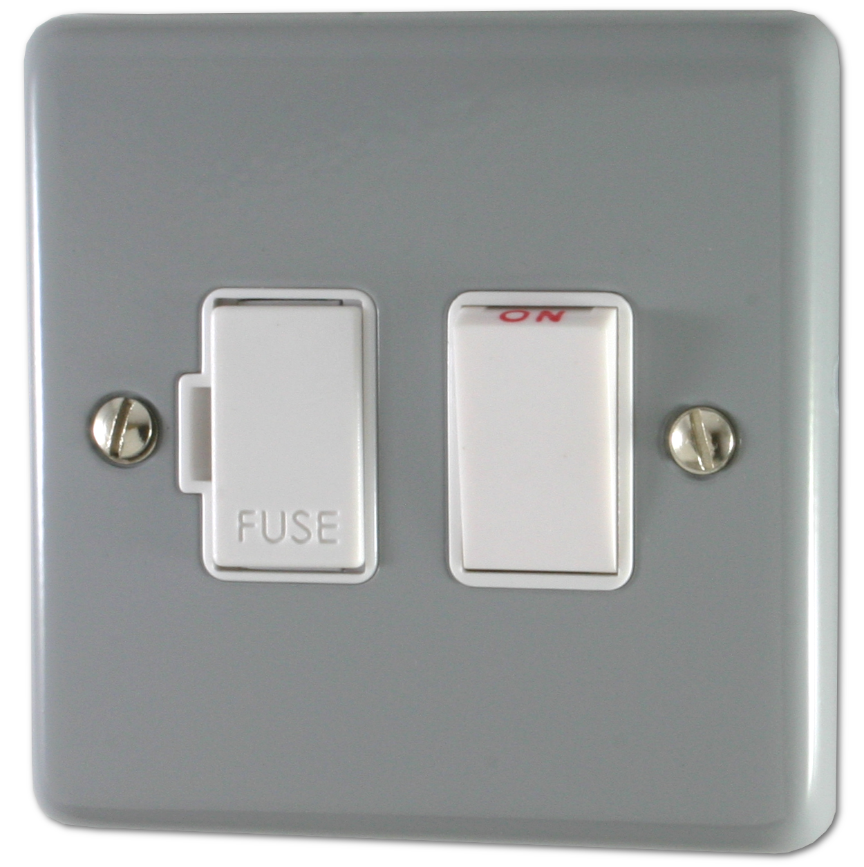 Contour Light Grey Switched Fused Spur (White Plastic Switch) - G+H CLG57W