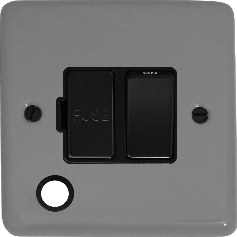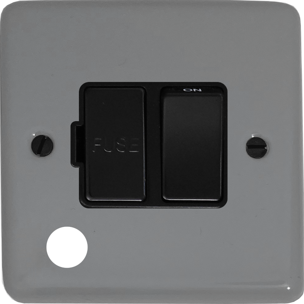 Contour Light Grey Switched Fused Spur with Flex Outlet (Black Plastic Switch) - G+H CLG56B