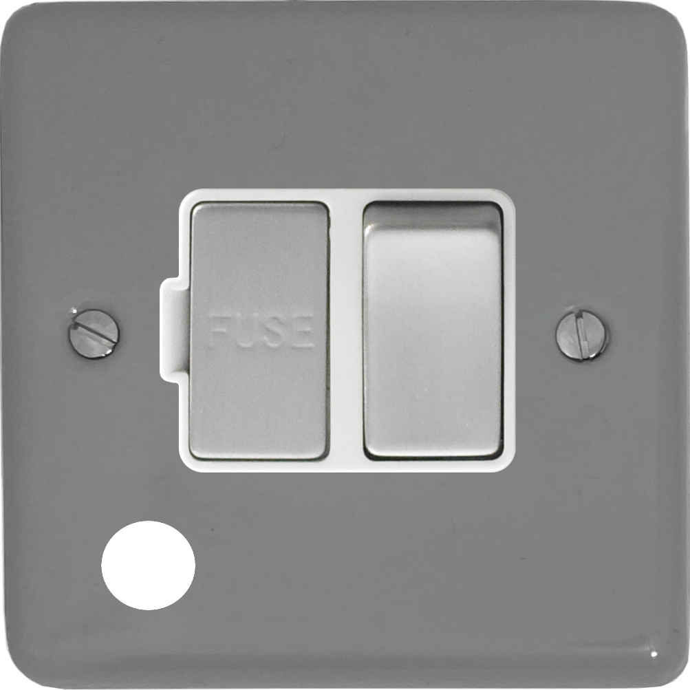 Contour Light Grey Switched Fused Spur with Flex Outlet (White Insert/Metal Switch) - G+H CLG256