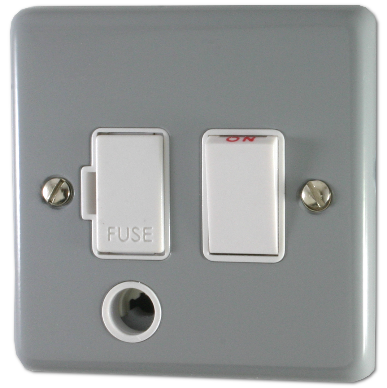 Contour Light Grey Switched Fused Spur with Flex Outlet (White Plastic Switch) - G+H CLG56W