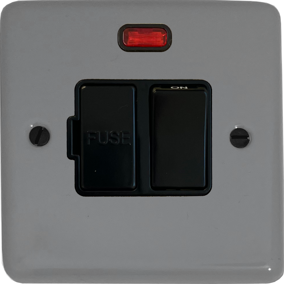 Contour Light Grey Switched Fused Spur with Neon (Black Plastic Switch) - G+H CLG27B