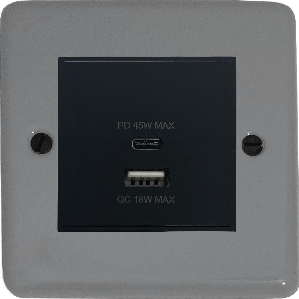 Contour Light Grey USB Charger (Dual USB A + C Quick Charge) (1 Gang/Black insert) - G+H CLG43B