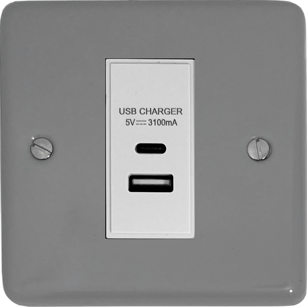 Contour Light Grey USB Charger (USB-A and USB-C) (1 Gang/White insert) - G+H CLG41W