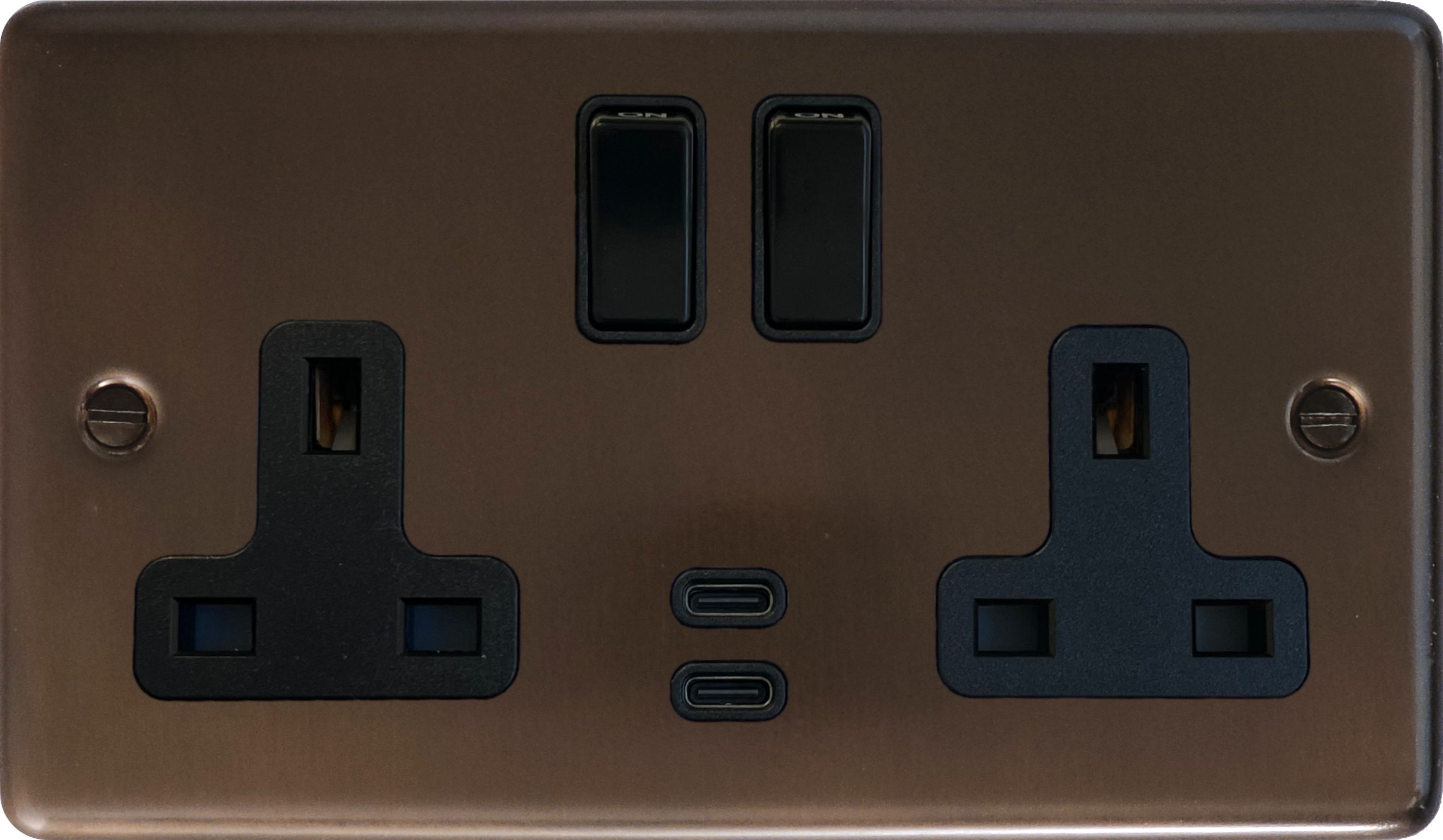 Contour Medium Bronze 2 Gang Socket with USBC