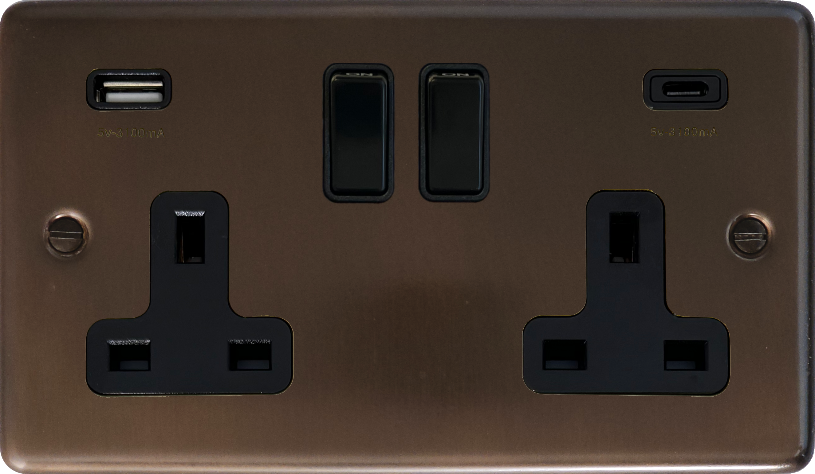 Contour Medium Bronze Double Socket (2 Gang/USB-A and USB-C) - G+H CMBZ911B