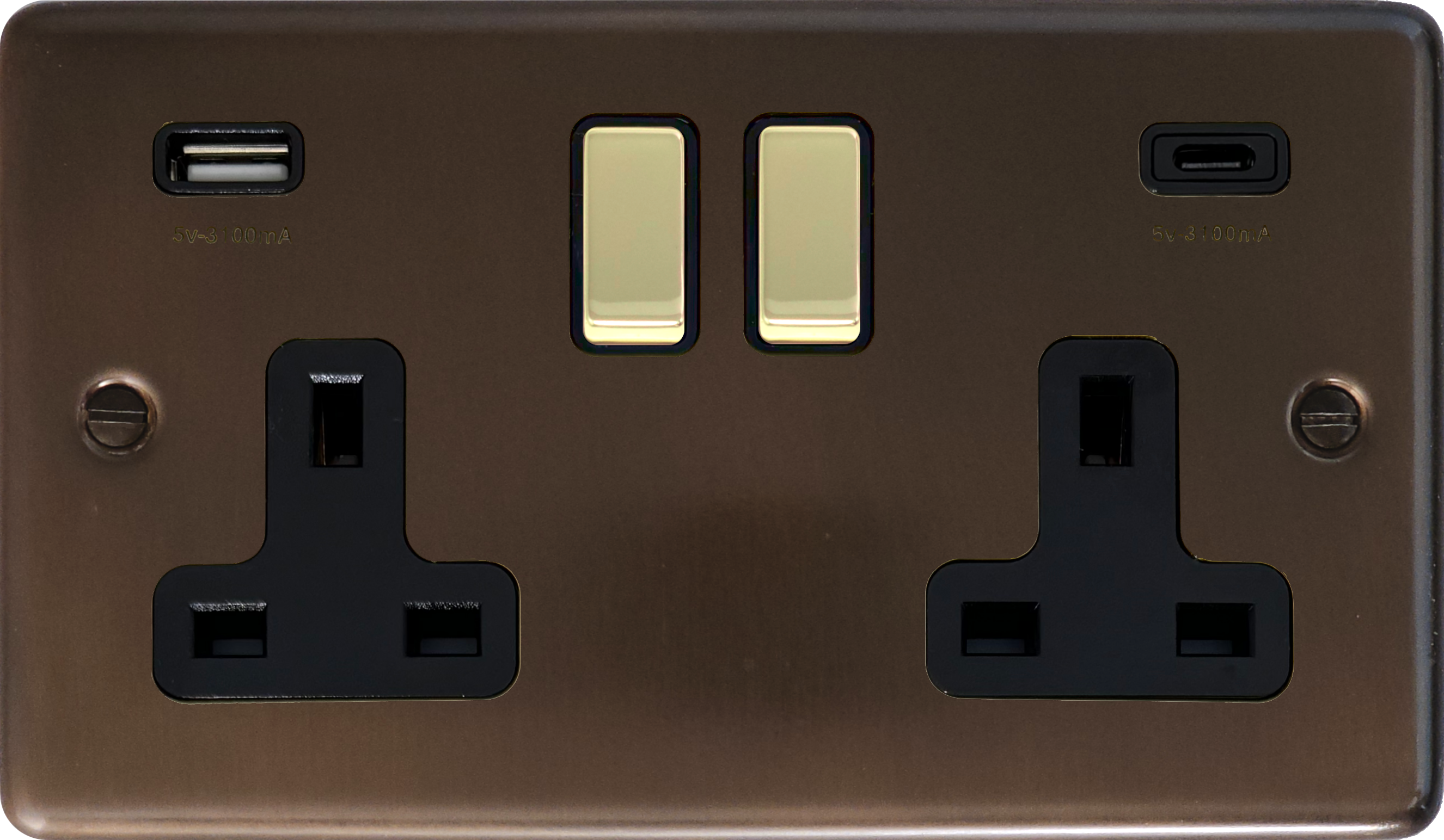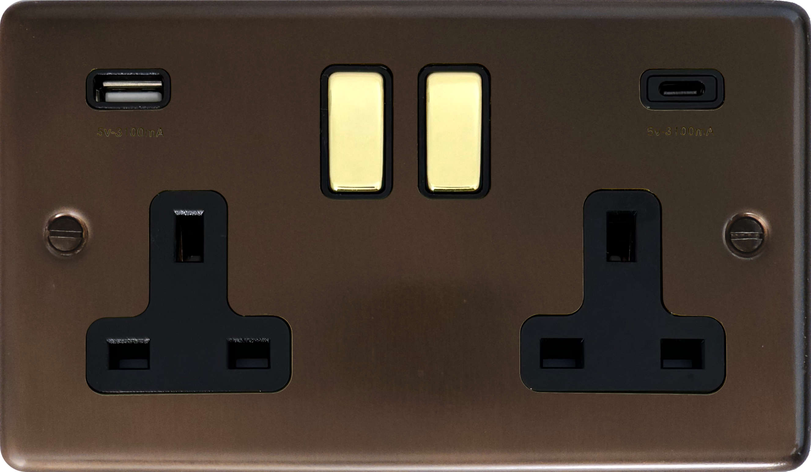 Contour Medium Bronze Double Socket (2 Gang/USB-A and USB-C/Polished Brass Switches) - G+H CMBZ3911-PB